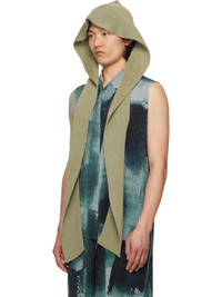 Lightweight rib-knit cotton scarf in khaki. · Integrated beanie at length · L84" x W5" Supplier color: Khaki 100% cotton. Made in Japan 251729M150005