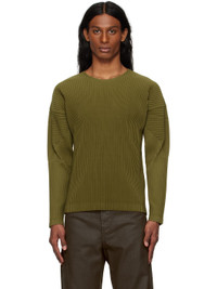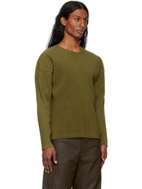 Garment-pleated polyester tricot T-shirt. · Crewneck · Dolman sleeves Supplier color: Olive khaki 100% polyester. Made in Japan 251729M213012