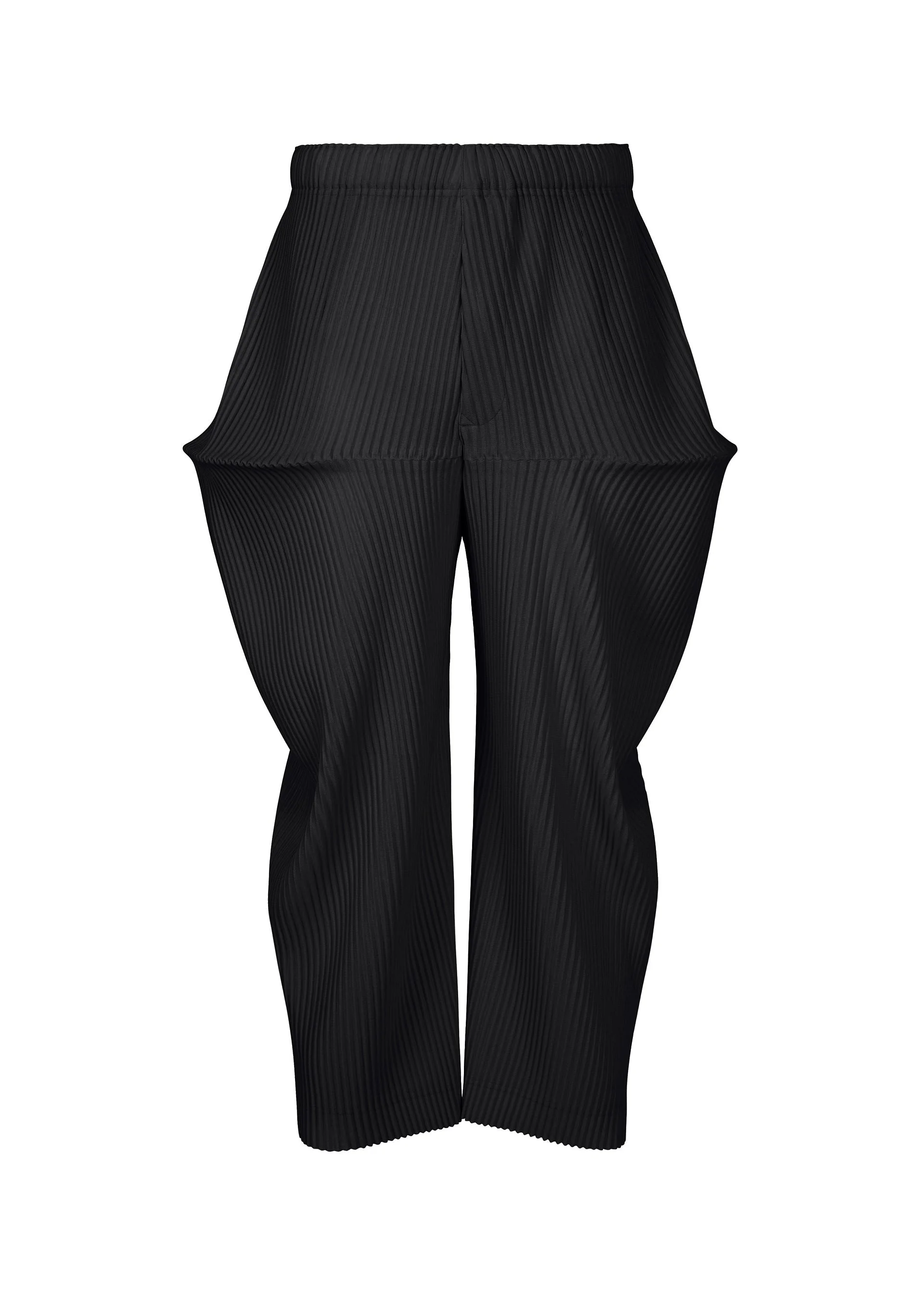 These pants are characterized by their three-dimensional form inspired by the geometric shapes of mobiles that move with the wind. They have a button-fly design. Product Information Material: 100% polyester Country of origin: Philippines Waist specifications:Rubber/Drawcord Front opening specification:button fly Pocket (position):both sides