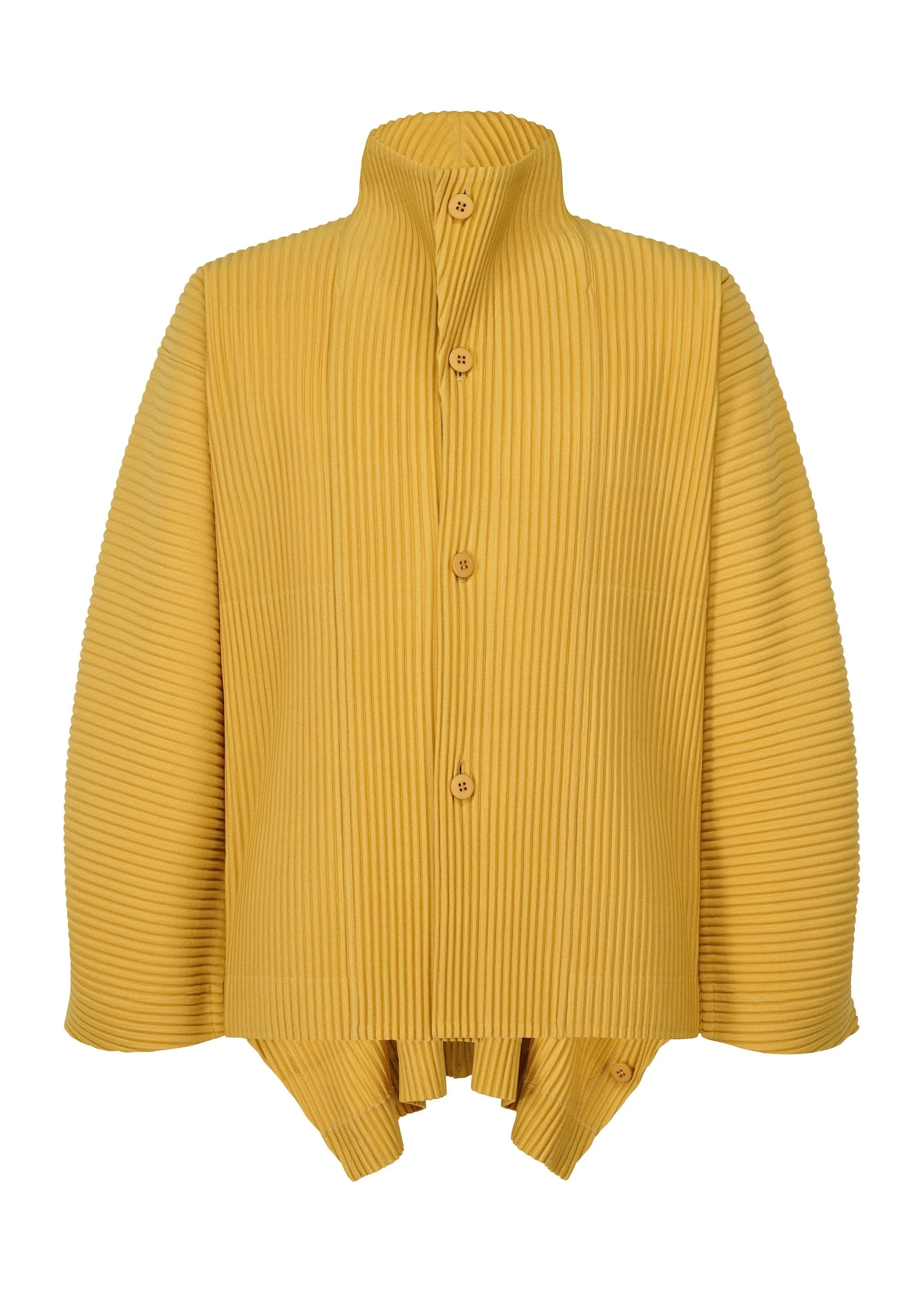 This jacket gives a light impression by applying the structure of kites to clothing. Its form, which looks like a kite flying in the sky, becomes three-dimensional as if the wearer has expanded it instead of the wind. It is made with ample fabric, and its silhouette can be changed depending on whether you close the buttons. It has pockets on both sides.