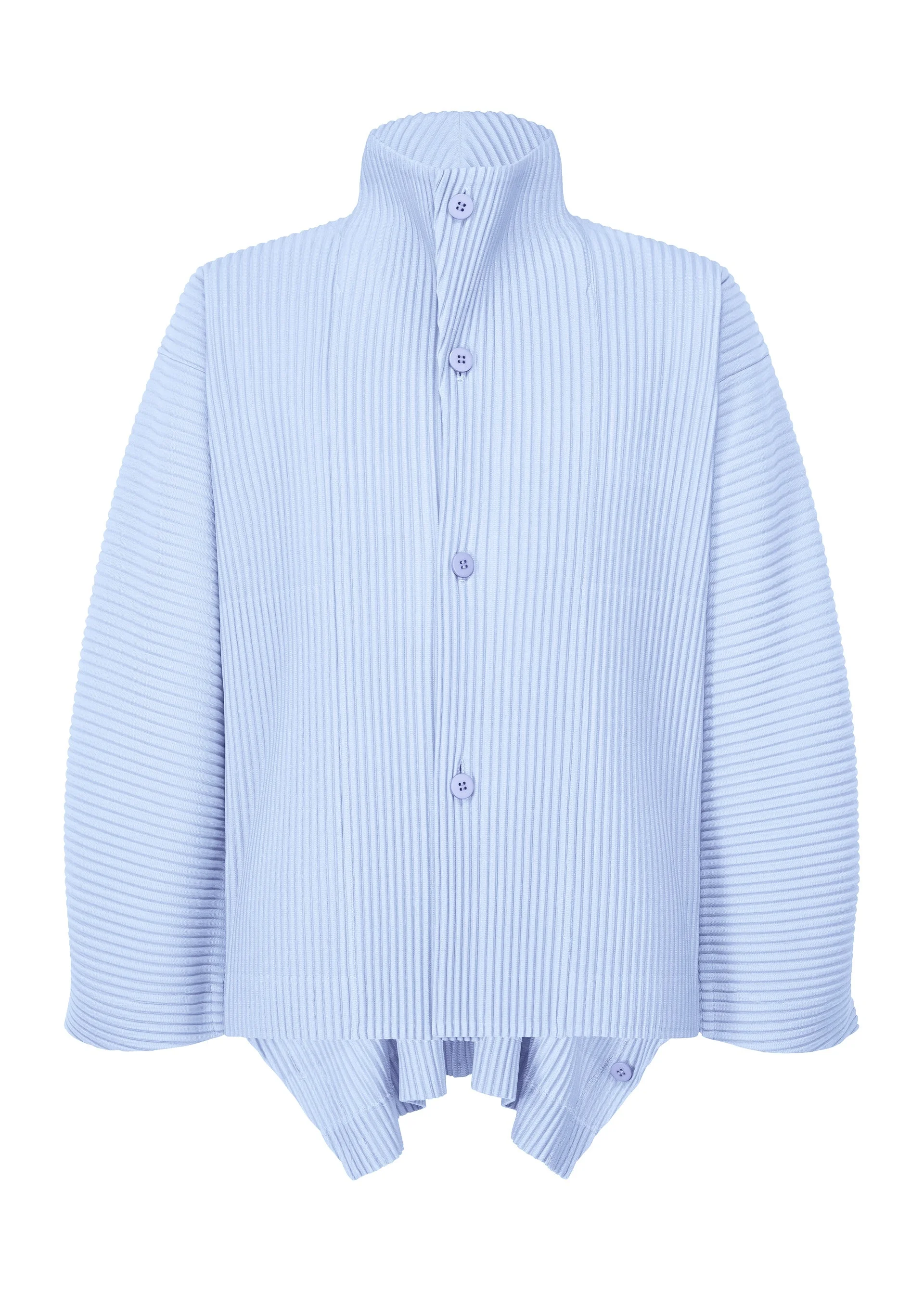 This jacket gives a light impression by applying the structure of kites to clothing. Its form, which looks like a kite flying in the sky, becomes three-dimensional as if the wearer has expanded it instead of the wind. It is made with ample fabric, and its silhouette can be changed depending on whether you close the buttons. It has pockets on both sides.