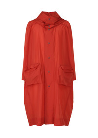 This hooded coat is inspired by the structure and detailing of kites which billow in the wind. The double stitching and curved fabric seams mimic kite construction, and you can cinch the detailing by adjusting the back cord. The coat is made from lightweight, refreshing fabric with a special resin treatment for a paper-like feel. Like a kite stored in a drawstring bag, the coat can be folded into its own pocket for storage. There are pockets on both sides. Product Information Material: 100% Nylon Country Of Origin: Philippines Front Opening:Button Sleeve (Shape):Dolman Sleeve Pocket (Position):Both Sides Others:Hood