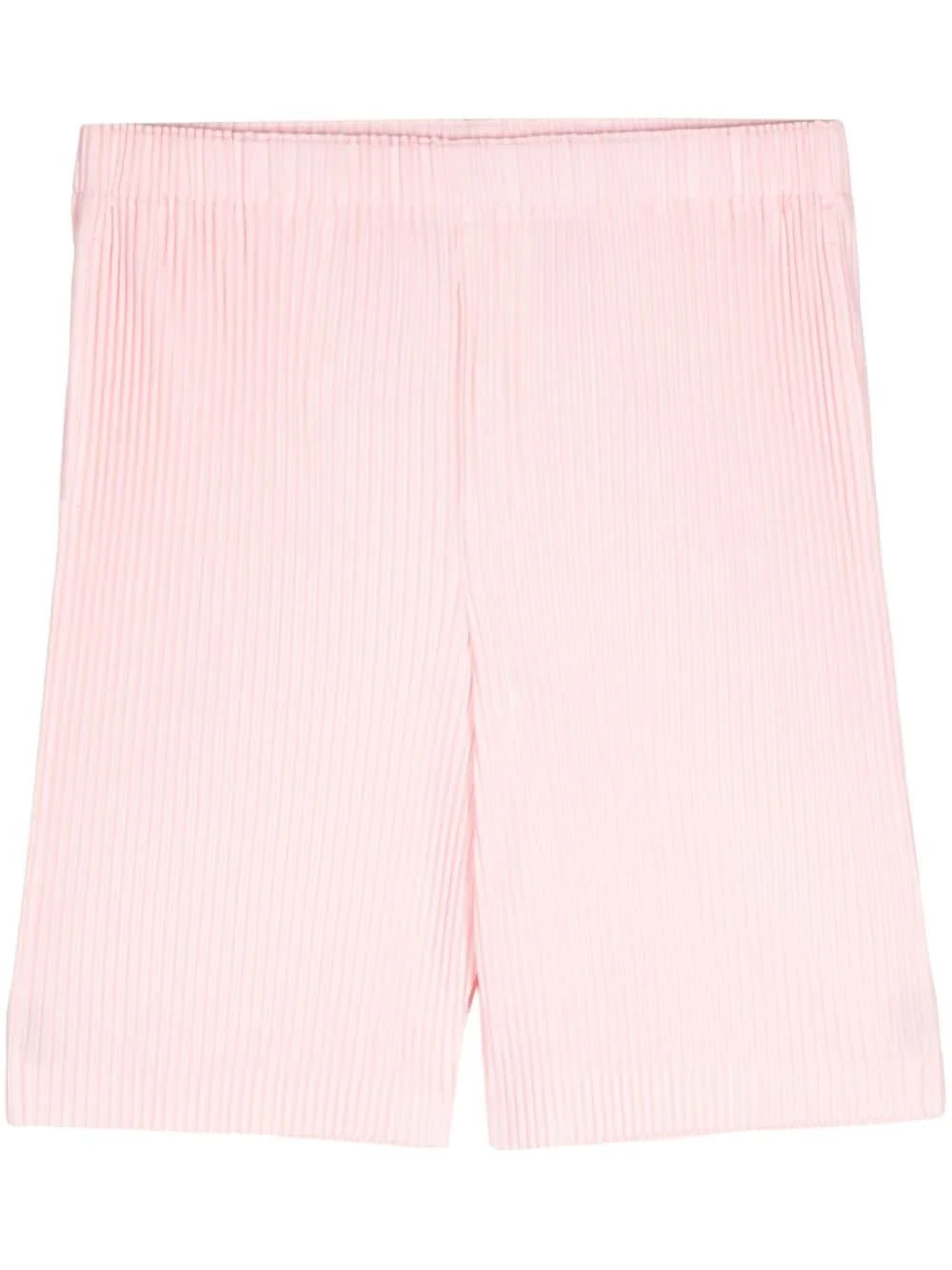May plisse pleated bermuda shorts Highlights - Light pink - Plisse effect - Elasticated waistband with internal drawstring - Straight leg - Two side slit pockets - Straight hem - Above-knee length Imported Composition Polyester 100% SIZE & FIT FittingInformation Designed for a straight-leg, allowing for an unrestricted and comfortable fit over the leg Adjust this piece’s waistband to your preference using the drawstring The pleated construction on this piece allows for additional movement and flexibility in the fit Washing instructions Machine Wash