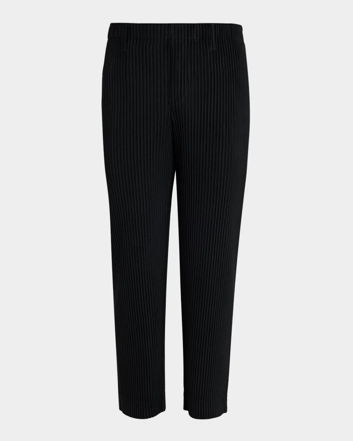 These Homme Plisse Issey Miyake pants offer easydry, lightweight and portable benefits unique to the pleated polyester. Regular rise Flat front Side slip pockets Classic fit through straight legs Button front closure; belt loops Polyester Machine wash cold Imported