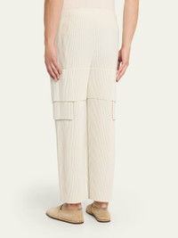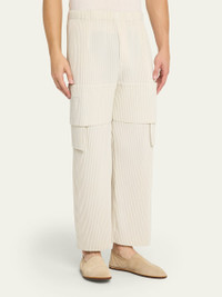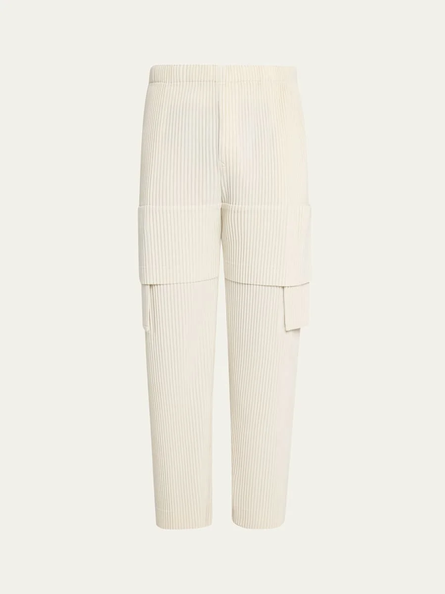 An all-over pleating creates a textured finish for these Homme Plisse Issey Miyake pants. Elasticized waist Side seam pockets Cargo pockets on legs Full length Relaxed fit; straight legs Pull-on style Polyester Machine wash cold, lay flat to dry Imported Online Inquiries: BGS21_NDRNA| Store Inquiries: #5072894