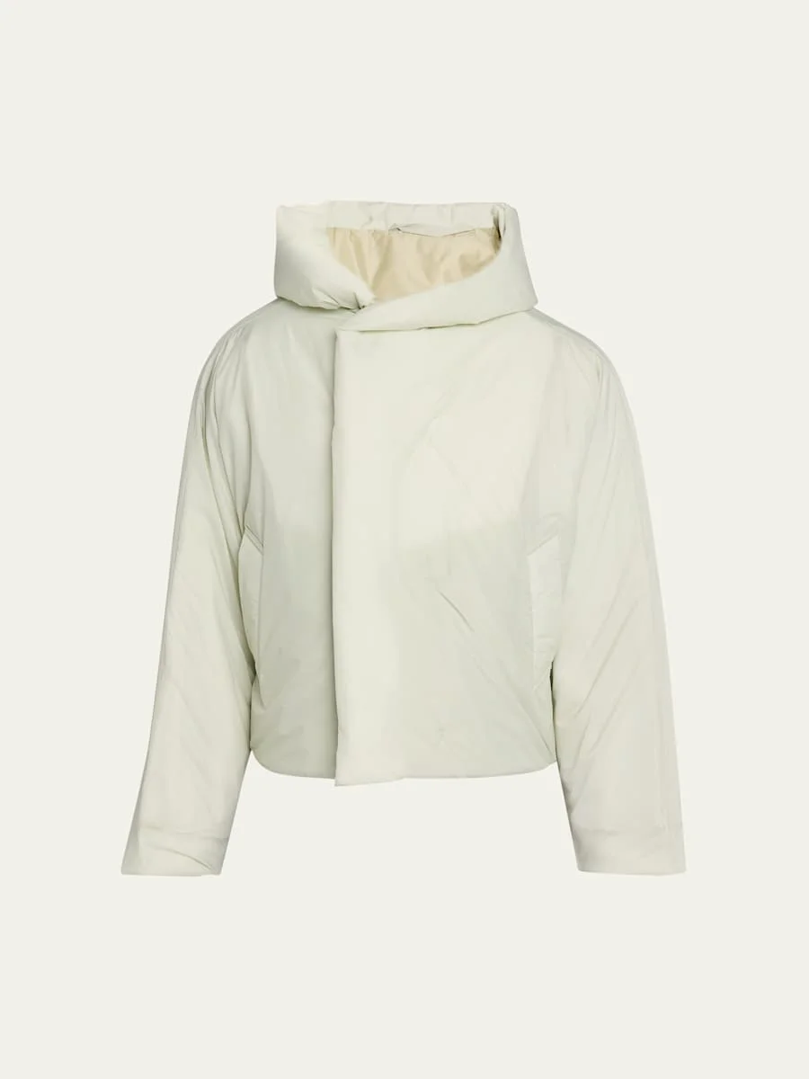 This short jacket from Homme Plisse Issey Miyake offers a minimalist design accented with plush polyester padding for added warmth and comfort. Large hood Concealed button front Side welt pockets Oversized fit Polyester Lining: Nylon Polyester fill Made in Japan