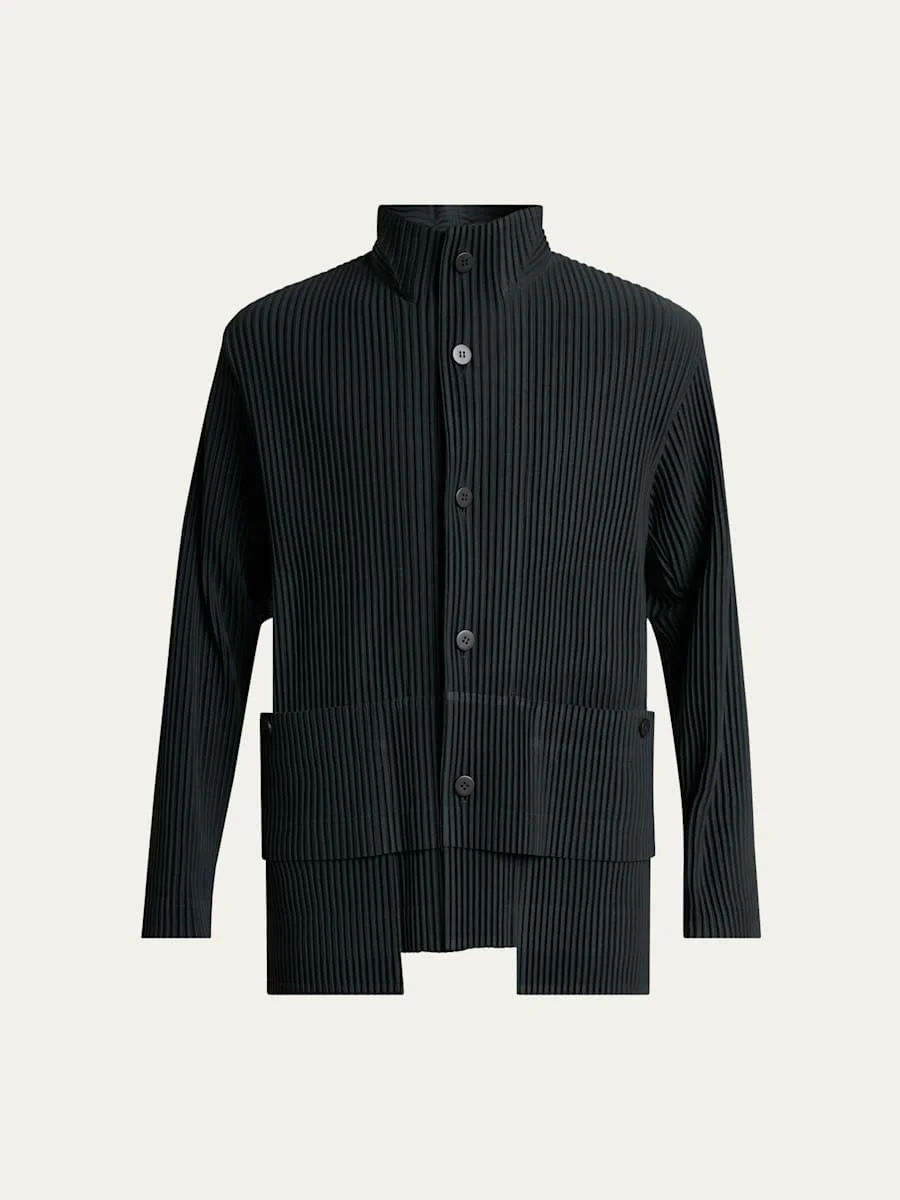 Homme Plisse Issey Miyake solid button-down shirt defined by expert pleating Stand collar Button front Multi-pockets Long sleeves Polyester Machine wash cold, line dry Imported Online Inquiries: BGS21_NDRN1| Store Inquiries: #5072884