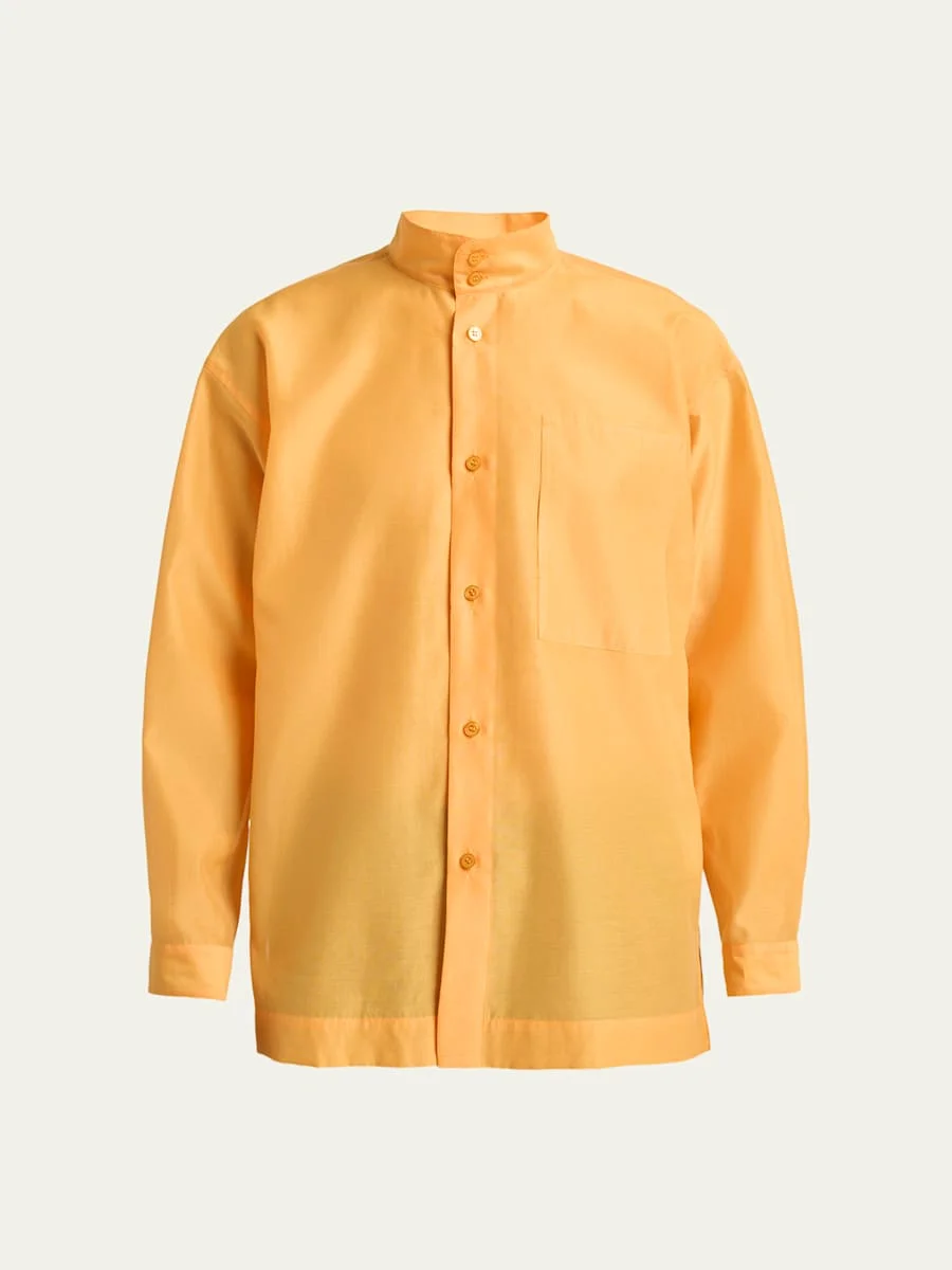 Men's Polyester and Wool Mandarin-Collar Sport Shirt