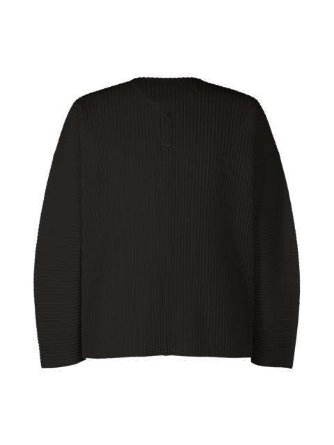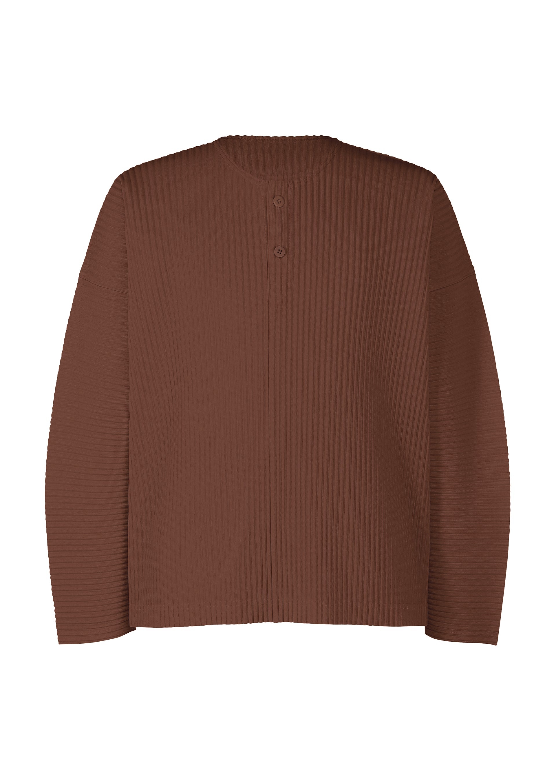 Henley neck top in bright colors. It dries easily, which is unique to polyester material, and is characterized by portability and light comfort. Horizontal pleats on the sleeves create a rounded and soft impression. Product Information Material: 100% polyester Country of origin: Japan neckline/collar:henry neck