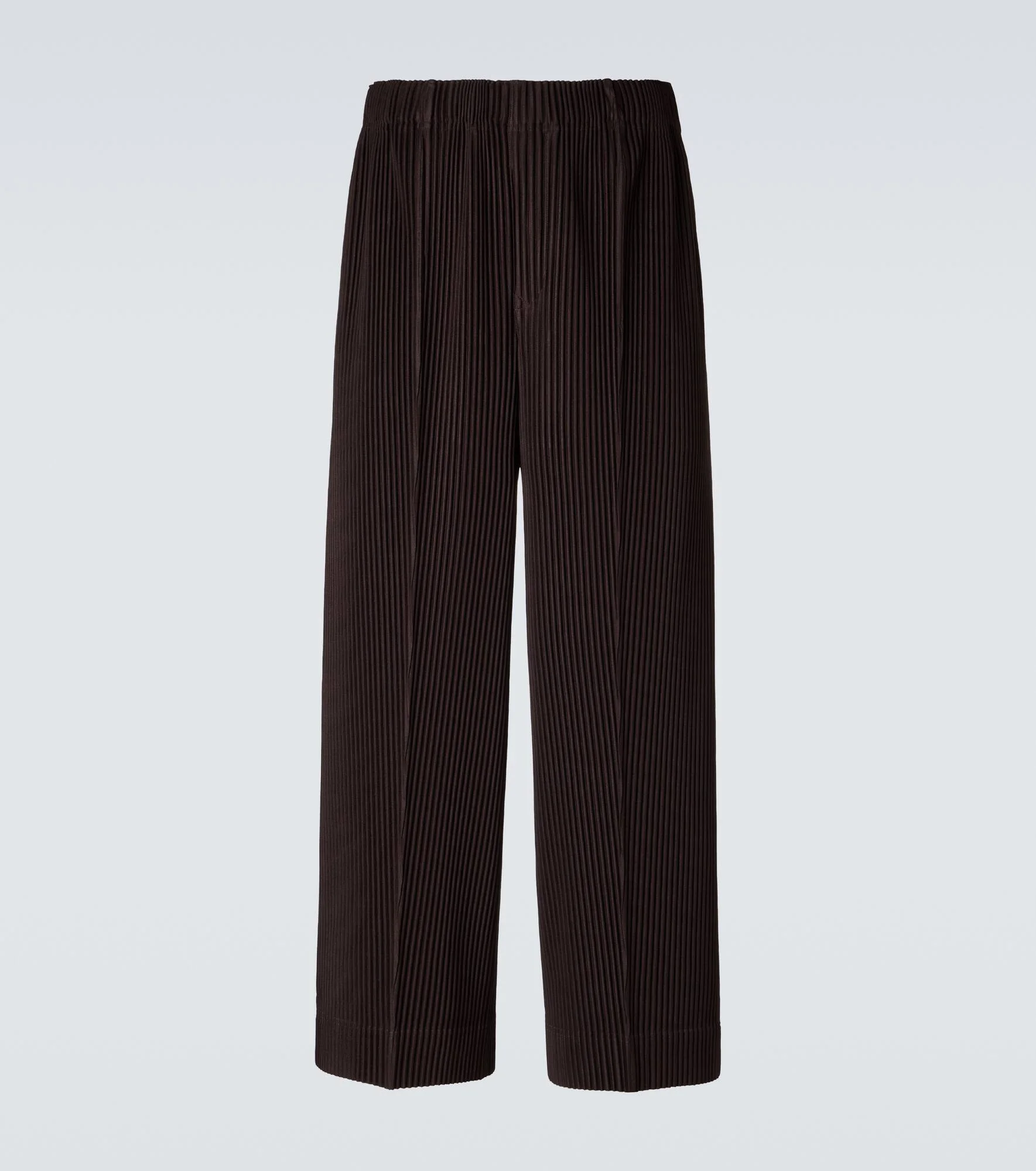 Homme Plisse Issey Miyake is the result of decades of research into the pleating craft. The Monthly Colors pants are a straight-leg style with an elasticated waistband and the brand's signature pleated construction. Product Details - Material: 100% polyester - Care instructions: machine wash at 30 degrees - Made in Japan - Color: brown - Designer color name: Eggplant Black - Elasticated waistband - Item number: P01164039 Size & Fit - True to size - Elasticated waist - Adjustable at the waist - Slightly stretchy fabric - Wide-leg - Height of model is 192cm-75.5" and wears a size 3