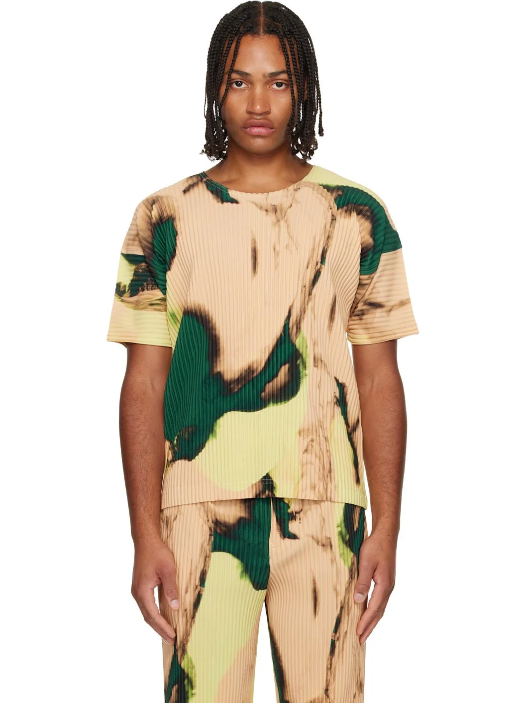 Garment-pleated tricot T-shirt. · Graphic pattern printed throughout · Crewneck Supplier color: Orange beige 100% polyester. Made in Philippines 252729M213017