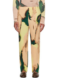 Garment-pleated tricot trousers. · Graphic pattern printed throughout · Straight-leg · Elasticized waistband · Two-pocket styling · Button fly Supplier color: Orange beige 100% polyester. Made in Philippines 252729M191054