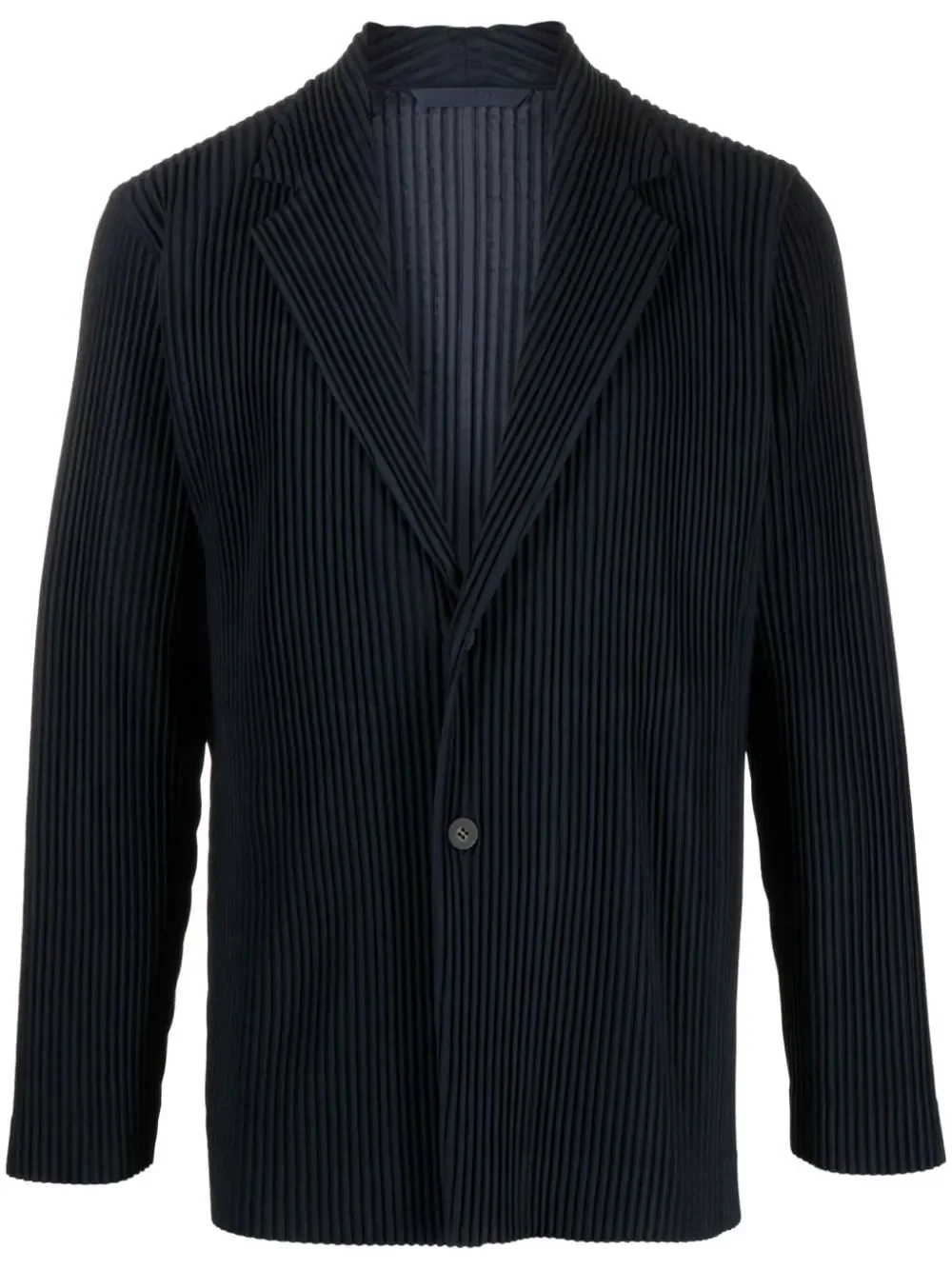 AW23 Drop 2 Tailored Pleated Blazer in Navy from Homme Plisse Issey Miyake Highlights - navy blue - fully pleated - notched lapels - front button fastening - long sleeves - straight hem Made in Philippines Designer ID: HP39JD401 Color ID: 75 NAVY Materials 100% Polyester