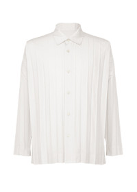 This shirt with a regular collar is made from thin polyester fabric with a hand-pleated finish. There are slits on both sides.