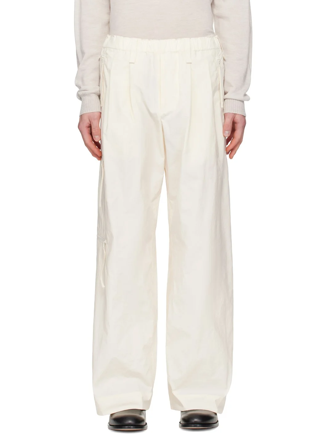 Nylon canvas trousers. · Wide-leg · Mid-rise · Belt loops · Elasticized waistband · Four-pocket styling · Zip fly · Pleats at front · Zip pockets at outseam Supplier color: White 100% nylon. Made in Japan 261729M191022