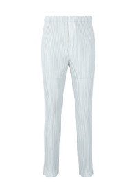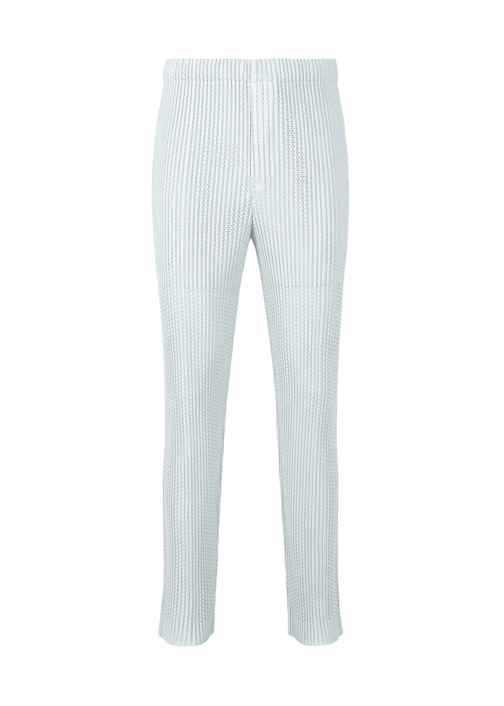 These pants with a sporty design are made from breathable, thick mesh material that is pleated. They have center back slits, pockets on both sides, and an inner draw cord. They have a button-fly design. Product Information Material: 100% polyester Lining: 100% polyester Country of origin: Philippines Waist specifications:Rubber/Drawcord Front opening specification:button fly Pocket (position):both sides Slit (position):center back