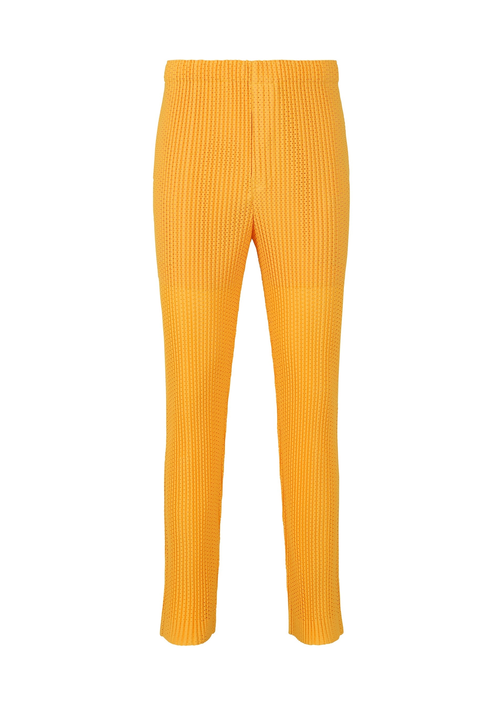 These pants with a sporty design are made from breathable, thick mesh material that is pleated. They have center back slits, pockets on both sides, and an inner draw cord. They have a button-fly design. Product Information Material: 100% polyester Lining: 100% polyester Country of origin: Philippines Waist specifications:Rubber/Drawcord Front opening specification:button fly Pocket (position):both sides Slit (position):center back