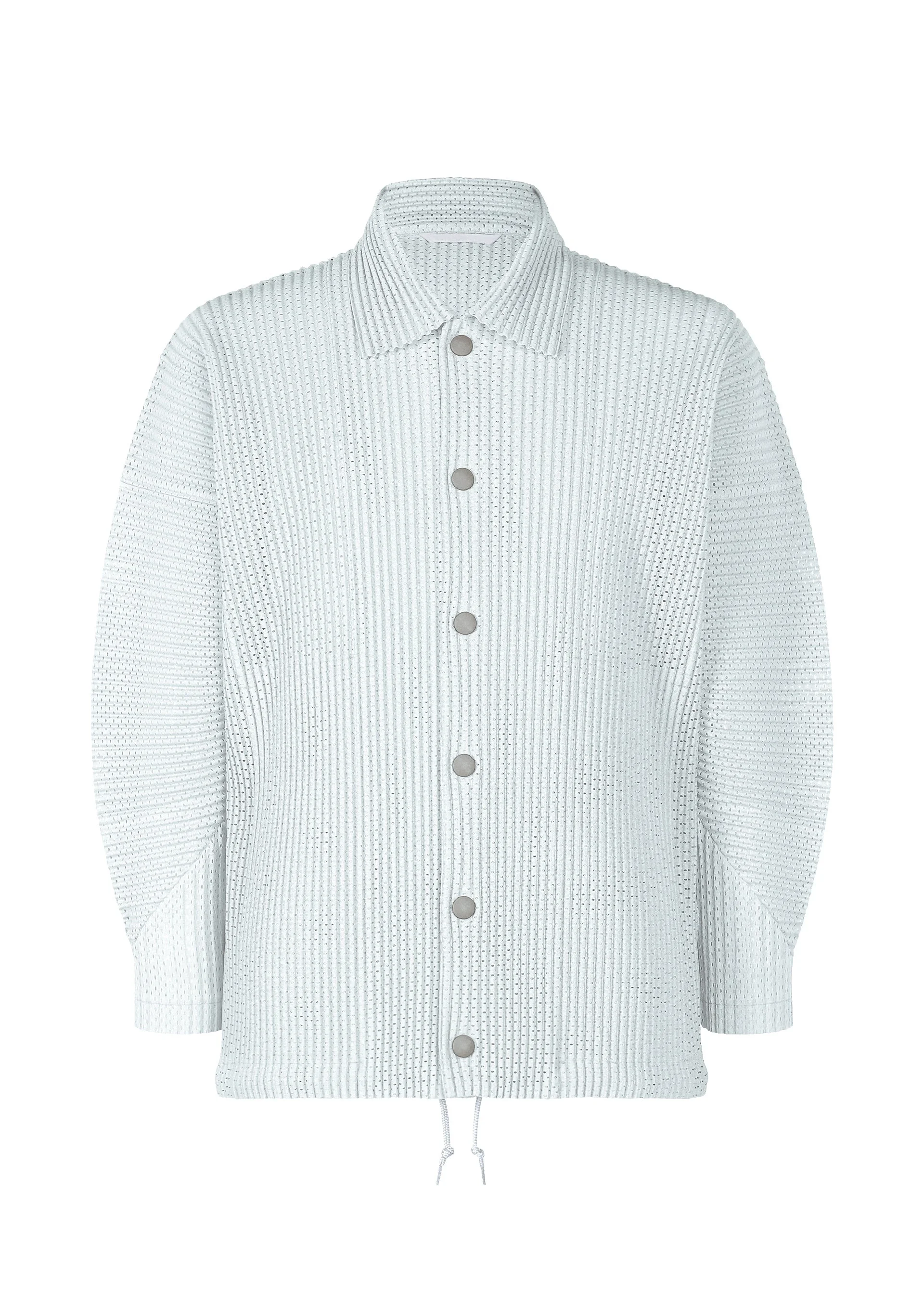 This collared jacket with a sporty design is made from breathable, thick mesh material that is pleated. It has pockets on both sides. Product Information Material: 100% polyester Country of origin: Philippines neckline/collar:stainless steel collar Front opening:button Pocket (position):both sides others:Draw cord (hem) collar hanging
