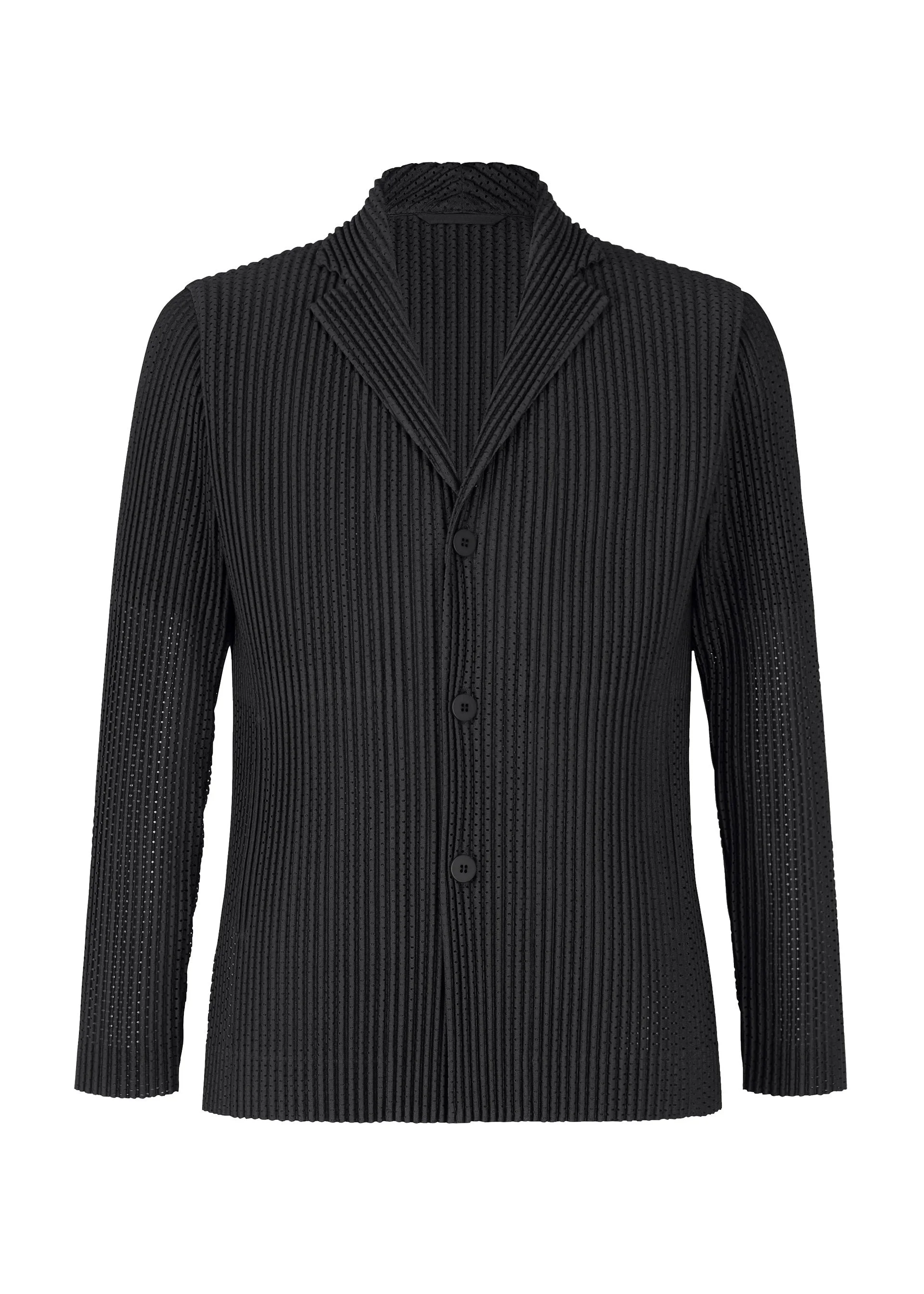 This tailored jacket with a sporty design is made from breathable, thick mesh material that is pleated. It has pockets on both sides. Product Information Material: 100% polyester Lining: 100% polyester Country of origin: Philippines neckline/collar:tailored collar Front opening:button Pocket (position):both sides others:collar hanging