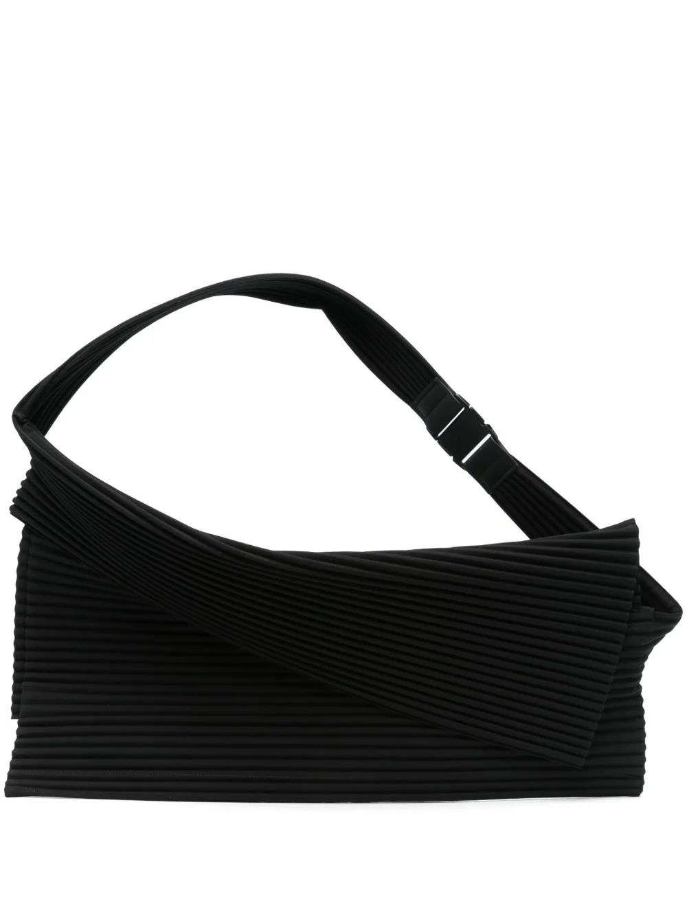 Overlap shoulder bag Highlights - Black - Press-stud fastening - Buckle fastening - Single shoulder strap - Plisse effect Imported Composition Outer: Recycled Polyester 100%, Leather 100% SIZE & FIT Model measurements Height 6 ft 2 in(1.89 m) Bust/Chest 36.22 in(92 cm) Hips 35.82 in(91 cm) Waist 28.54 in(72.5 cm) Measurement HEIGHT 20.07 in(51 cm) WIDTH 16.53 in(42 cm)