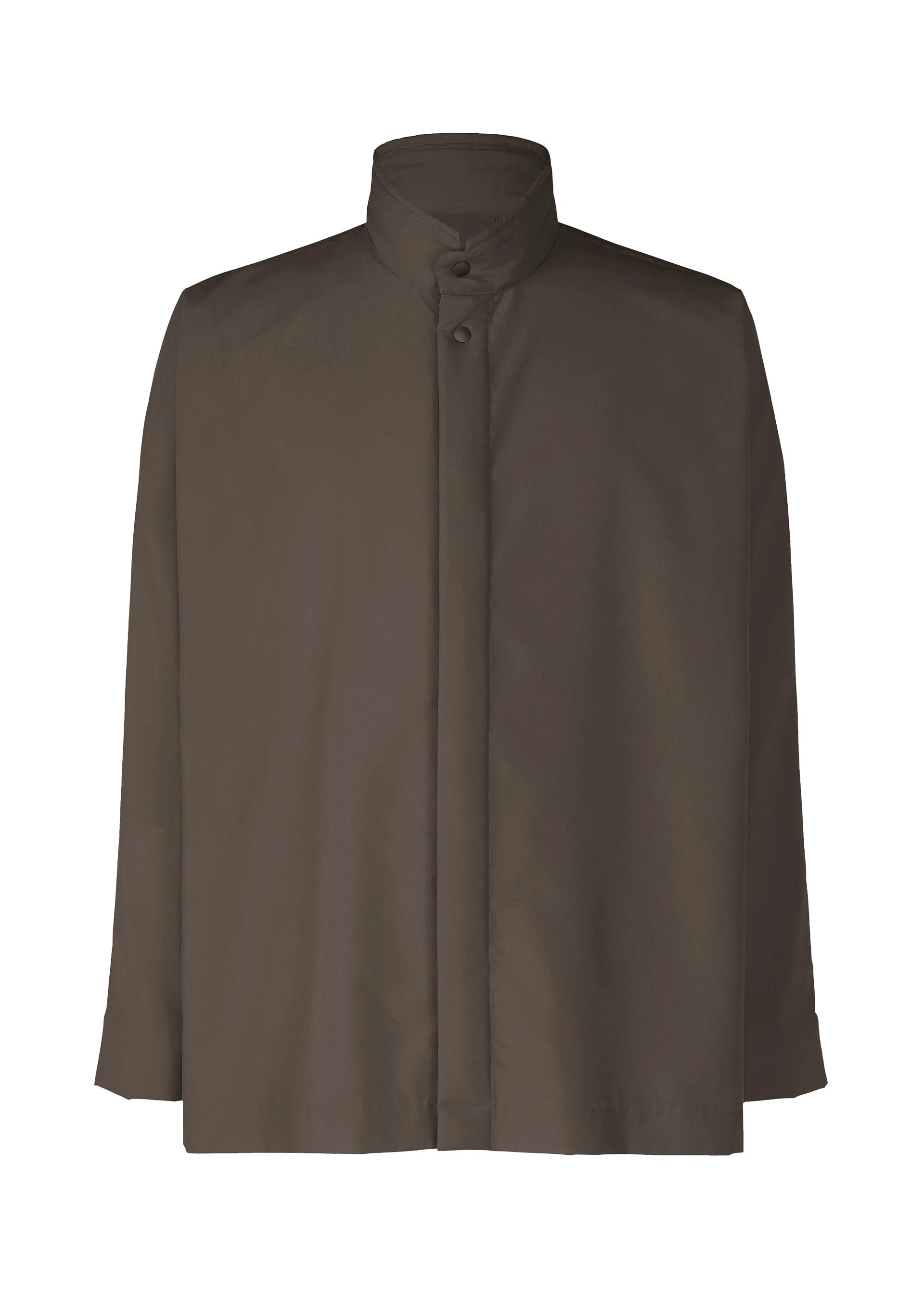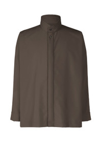 This shirt with a standing collar gives a soft impression with its cotton padding along the edges and detailed areas. It can be worn like a light outer layer in early autumn. It has slits on both sides. Product Information Material: 100% Polyester, Filling: 100% Polyester Made in Japan Neckline / Collar:Stand collar Front opening:Double-breasted button Slit (position):Both sides