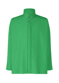 This shirt with a standing collar gives a soft impression with its cotton padding along the edges and detailed areas. It can be worn like a light outer layer in early autumn. It has slits on both sides. Product Information Material: 100% Polyester, Filling: 100% Polyester Made in Japan Neckline / Collar:Stand collar Front opening:Double-breasted button Slit (position):Both sides
