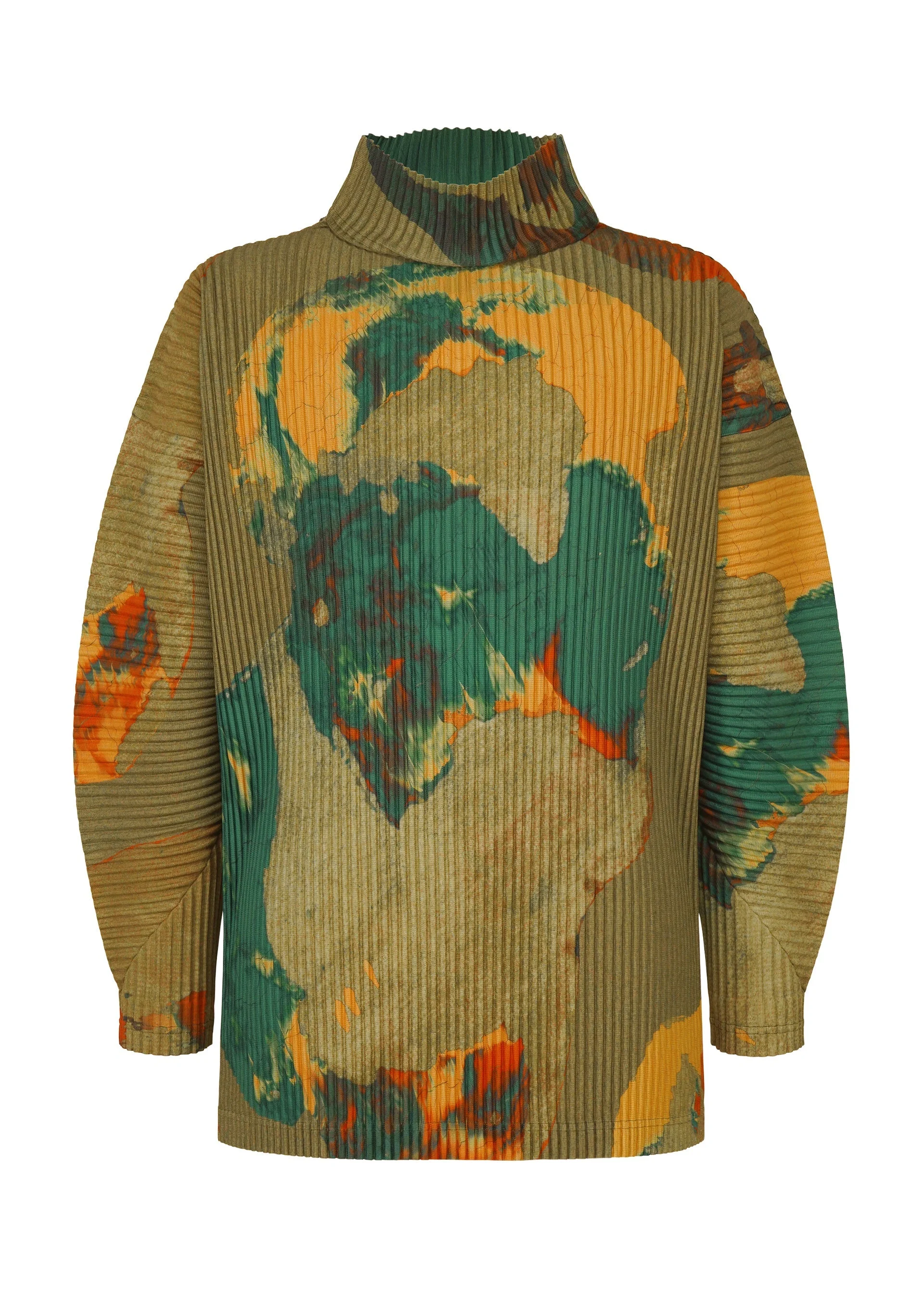 This long-sleeved top with a loose neckline features a pattern painted on sandpaper to express the rough texture of stone. Despite its simple design, the impressive pattern serves as an accent. It has slits on both sides. Product Information Material: 100% polyester Made in the Philippines Neckline / Collar:Off-the-shoulder turtleneck Slit (position):Both sides
