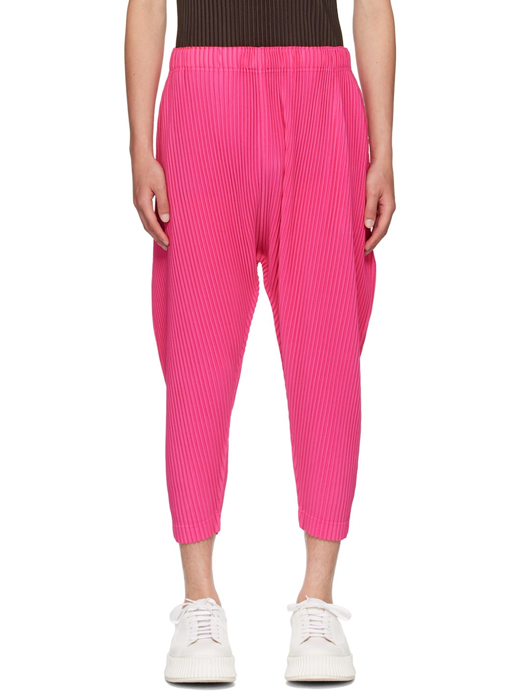 Relaxed-fit tapered garment-pleated polyester tricot trousers. · Concealed drawstring at elasticized waistband · Two-pocket styling Supplier color: Deep pink