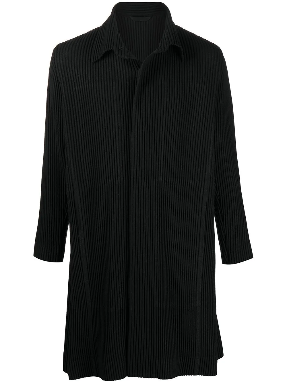 pleated button-up coat black fully pleated front button fastening long sleeves mid-length Imported Composition Outer: Polyester 100% Lining: Polyester 100% Washing instructions Hand Wash