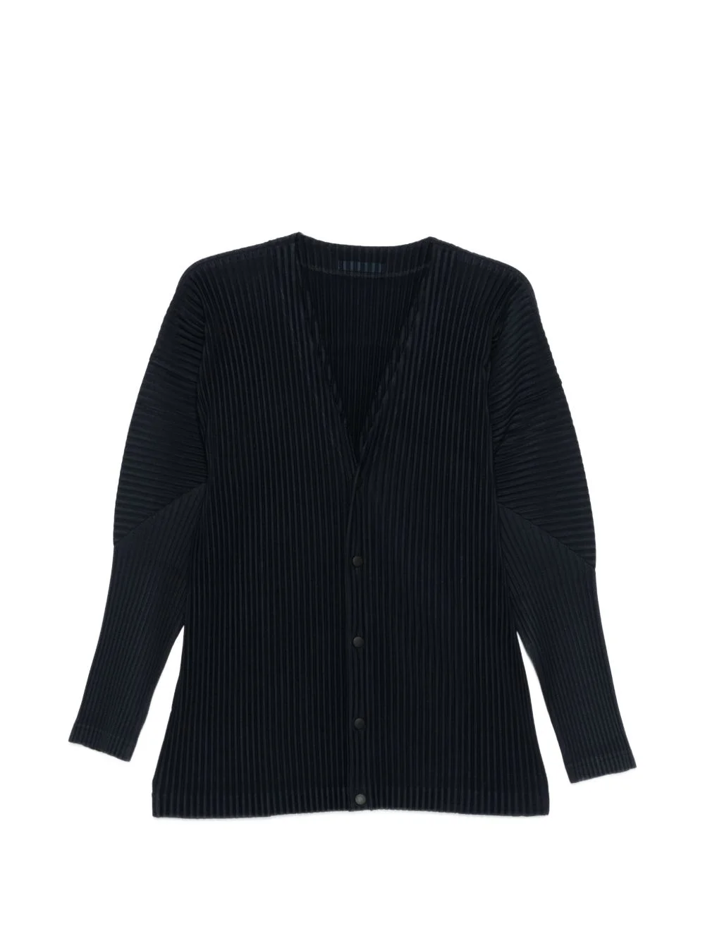 pleated buttoned cardigan Highlights - Blue - Pleated texture - V-neck - Front button fastening - Long sleeves - Straight hem Imported Composition Polyester 100% Washing instructions Machine Wash