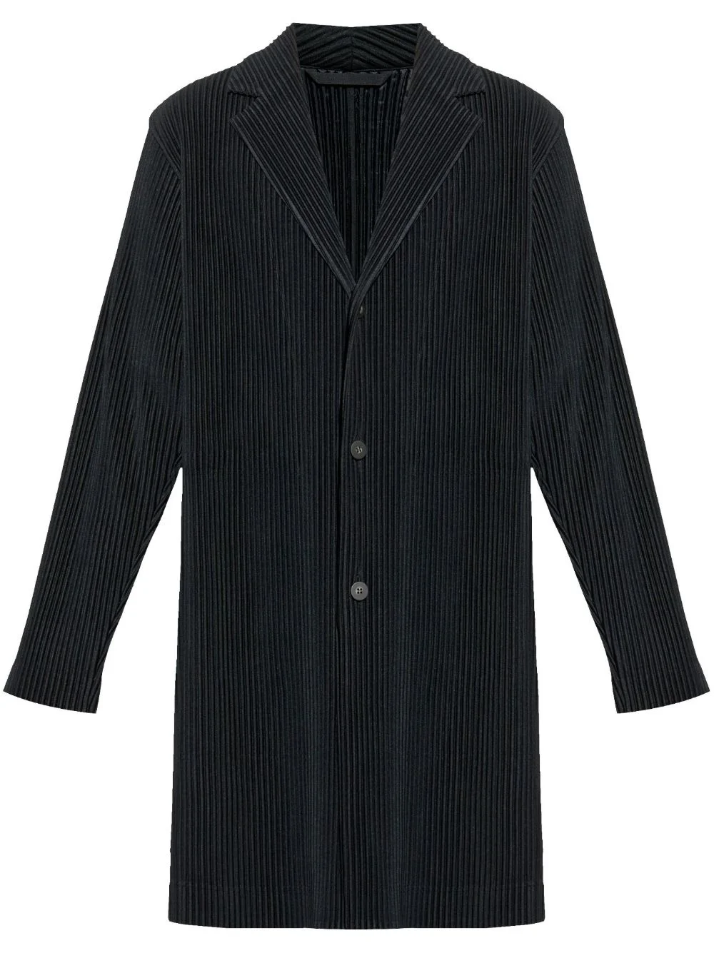 pleated coat Highlights - Black - Front button fastening - Two side slit pockets - Notched lapels - Long sleeves Imported Composition Polyester 100%