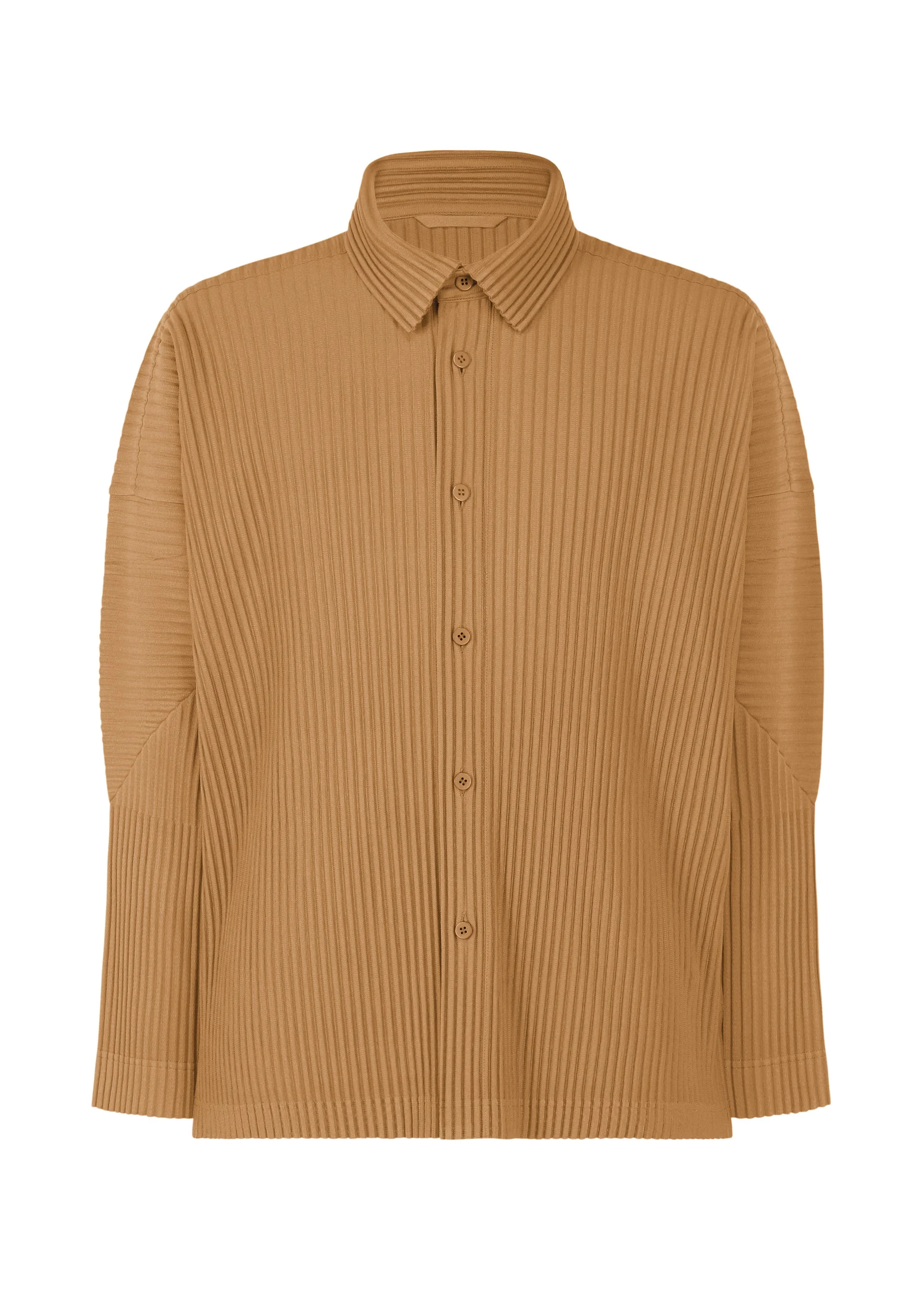 This shirt with a regular collar is available in warm color tones. It is characterized by its portability and light comfort with the unique quick-drying property of polyester material. There are slits on both sides. Product Information Material: 100% polyester Made in Japan Neckline / Collar:Regular Color Front opening:button Slit (position):Both sides