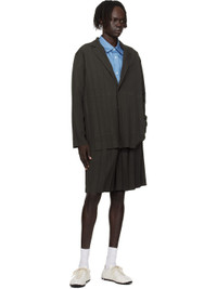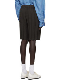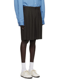 Recycled polyester twill shorts. · Pleats throughout · Straight-leg · Belt loops · Partially elasticized waistband · Two-pocket styling · Button fly Supplier color: Dark brown 100% polyester. Made in Philippines 252729M193000
