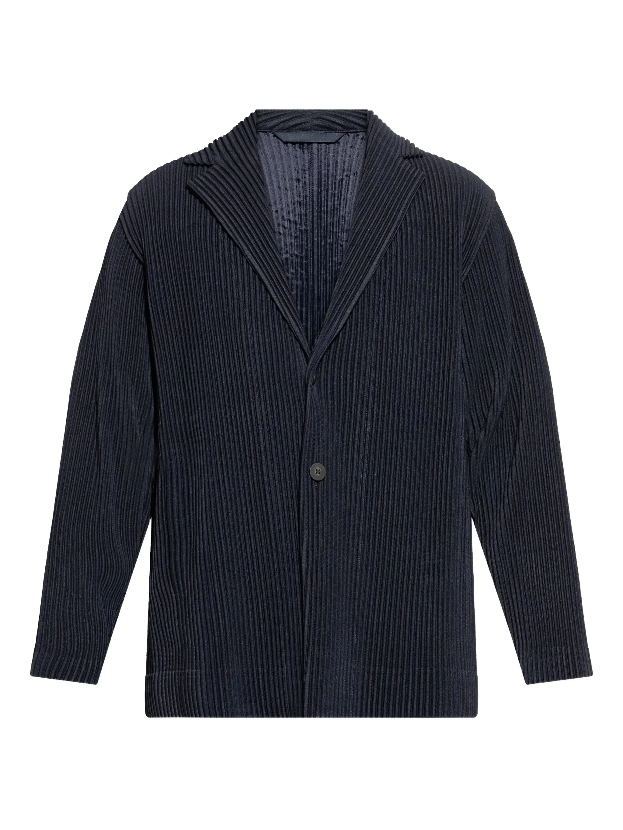 Pleated Blazer in Navy from Homme Plisse Issey Miyake Highlights - navy - full plisse - front button closure - long sleeves - straight hem Made in Philippines Designer ID: HP57JD501 Colour ID: 75-NAVY Materials 100% POLYESTER