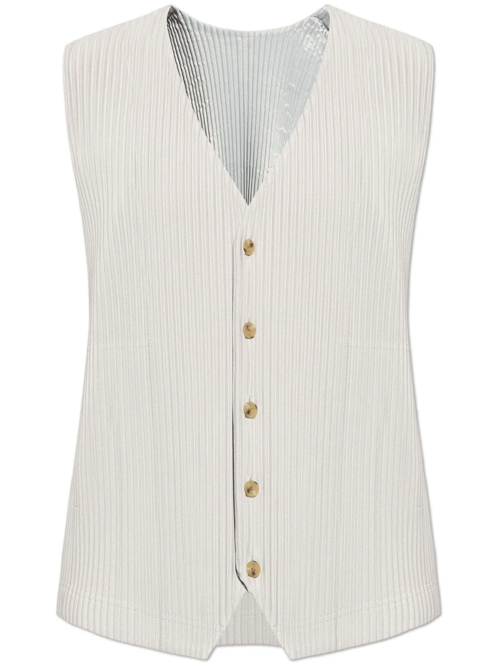 pleated V-neck vest Highlights - Light grey - Pleat detailing - V-neck - Front button fastening - Sleeveless - Straight hem Imported Composition Polyester 100% Washing instructions Read Manufacturer Guidelines
