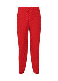 These pants are available in clear color tones. They are characterized by their pleat lines that appear to be twisted. They have pockets on both sides and an inner draw cord. They have a button-fly design. Product Information Material: 100% polyester Country of origin: Philippines Waist specifications:Rubber/Drawcord Front opening specification:button fly Pocket (position):both sides