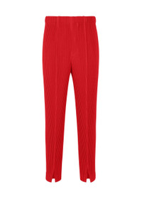 These straight pants are available in clear color tones. They have pockets on both sides, front slits, and an inner draw cord. They have a button-fly design. Product Information Material: 100% polyester Country of origin: Philippines Waist specifications:Rubber/Drawcord Front opening specification:button fly Pocket (position):both sides Slit (position):front