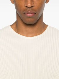 plisse-effect T-shirt Highlights - Light yellow - Crew neck - Three-quarter length sleeves - Decorative button detailing Imported Composition Polyester 100% SIZE & FIT Model measurements Height 6 ft 1 in(1.85 m) Bust/Chest 38.58 in(98 cm) Hips 37 in(94 cm) Waist 30.31 in(77 cm) FittingInformation Designed for a relaxed fit, this piece allows for comfort and movement when worn The pleated construction on this piece allows for additional movement and flexibility in the fit This piece is only produced in one size; for help with this item's sizing, refer to our product measurements