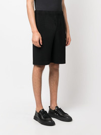 plisse straight-leg shorts Highlights - Black - Recycled polyester - Plisse effect - Mid-rise - Straight leg Made in United Kingdom Composition Recycled Polyester 100% SIZE & FIT Model measurements Height 6 ft 2 in(1.87 m) Bust/Chest 36.41 in(92.5 cm) Hips 35.43 in(90 cm) Waist 29.52 in(75 cm) FittingInformation Designed for a regular fit, offering an even fit over the leg Adjust this piece’s waistband to your preference using the drawstring The pleated construction on this piece allows for additional movement and flexibility in the fit This piece fits true to size – take your usual size