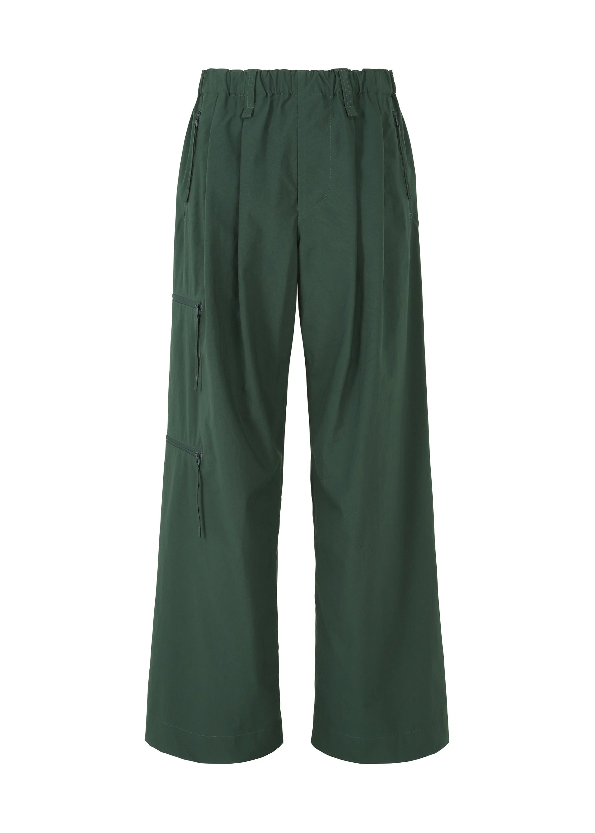 These cargo pants are made from nylon fabric with a taut feel and a moderately wrinkled texture. They are characterized by their pockets inspired by workwear used in mines and quarries, as well as their long zipper pull tabs. They have pockets on the front and back as well as both sides, and belt loops at the waist. They have a zipper-fly design. Product Information Material: 100% nylon Made in Japan Waist specifications:Elastic / Belt loop Front opening specification:Zip fly Pocket (position):Front and back, both sides