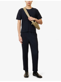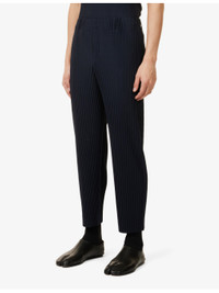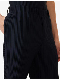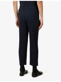 PRODUCT DETAILS - Homme Plisse Issey Miyake knitted trousers - 100% polyester - Pulls on - Regular fit, mid-rise, tapered leg, elasticated waistband, belt loops, concealed button fastening at front, side slip pockets, all-over pleats - Machine wash cold - Size 2: rise 12in / 31cm, inside leg 26in / 66cm, leg opening 16in / 41cm - Model is 6ft/1.83m and wears a size 2 - Lightweight, slight stretch Ref: R04436397