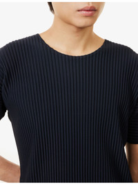 PRODUCT DETAILS - Homme Plisse Issey Miyake knitted T-shirt - 100% polyester - Pulls on - Regular fit, round neck, short sleeves, all-over technical pleats - Machine wash at 30°C - Model is 6ft 2in/1.88m and wears a size 2 - Lightweight, stretchy - This garment’s sizing is based on height and doesn’t conform to standard sizes. Please refer to the size guide for your desired length Ref: R04436398