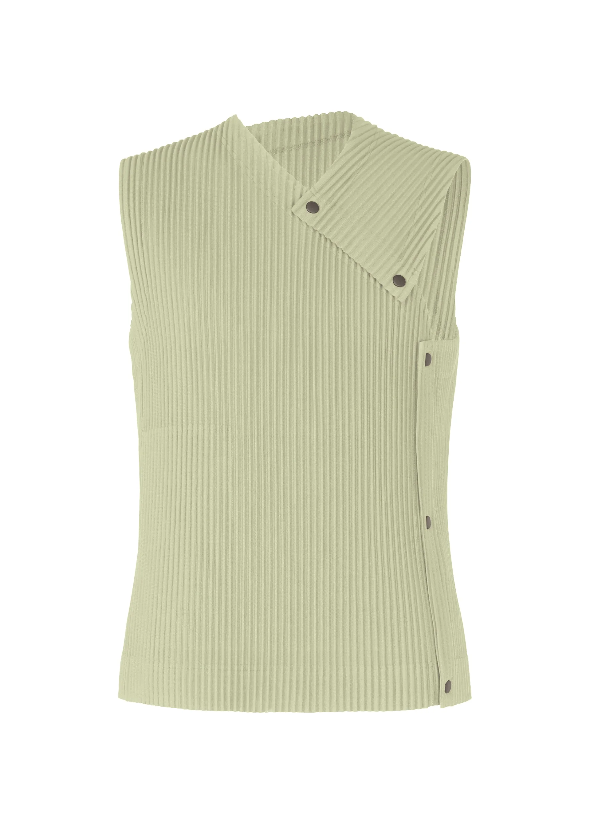 This vest is created by flattening the shape of a stone and reconstructing it into a garment pattern. It can be worn in a variety of ways by overlapping and fastening the buttoned parts. The light, organic design evokes the layered look of clouds. Product Information Material: 100% polyester Made in Japan Pocket (position):right others:Button (left)