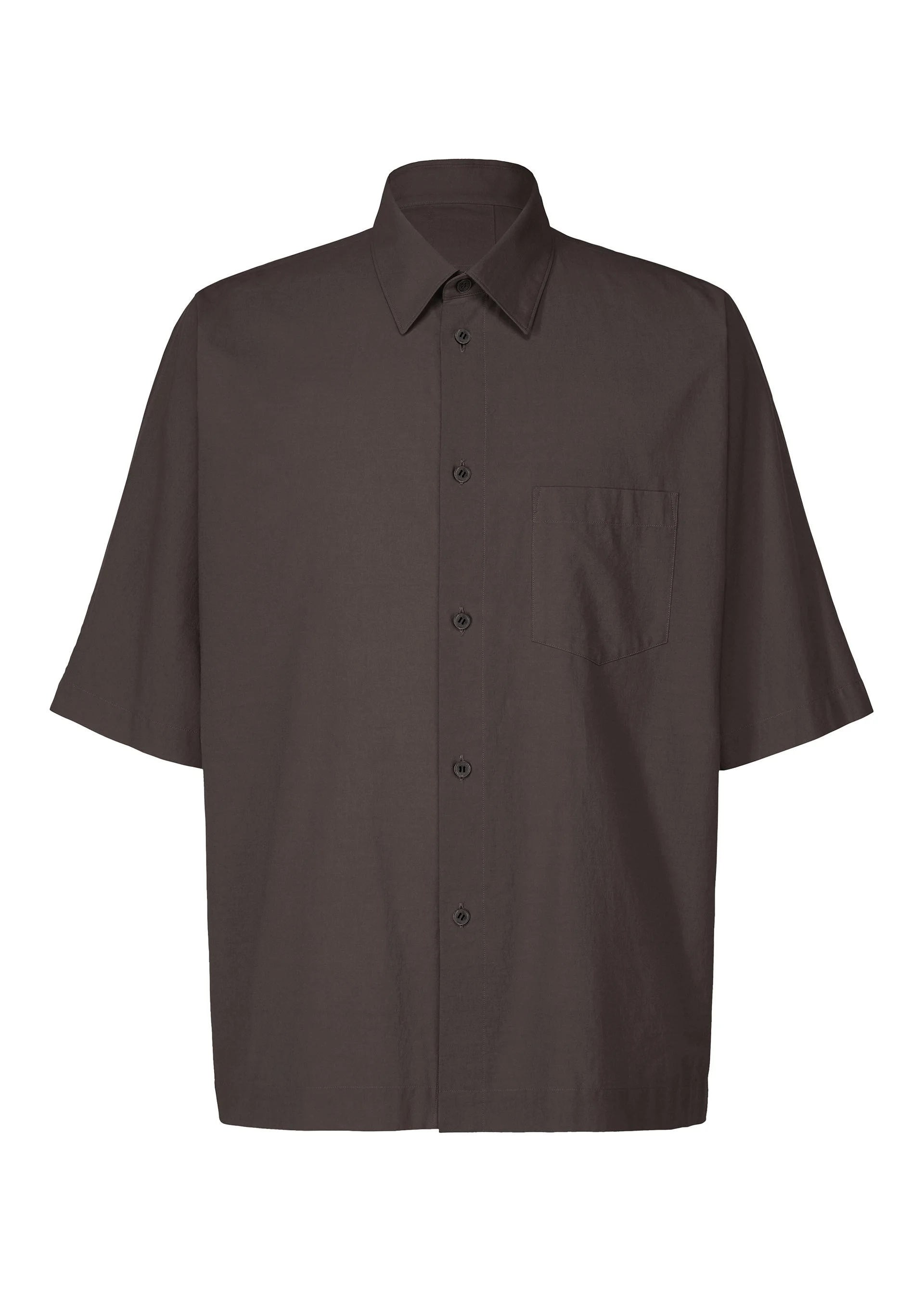 This shirt with a regular collar is made from 100% organic cotton thread. It is characterized by its fine, soft texture. The simple design makes it suit a wide variety of styles. It has a left chest pocket and slits on both sides. Product Information Material: 100% cotton, made in the Philippines Neckline / Collar:Regular Color Front Opening:Button Pocket (Position):Left Chest Slit (Position):Both Sides