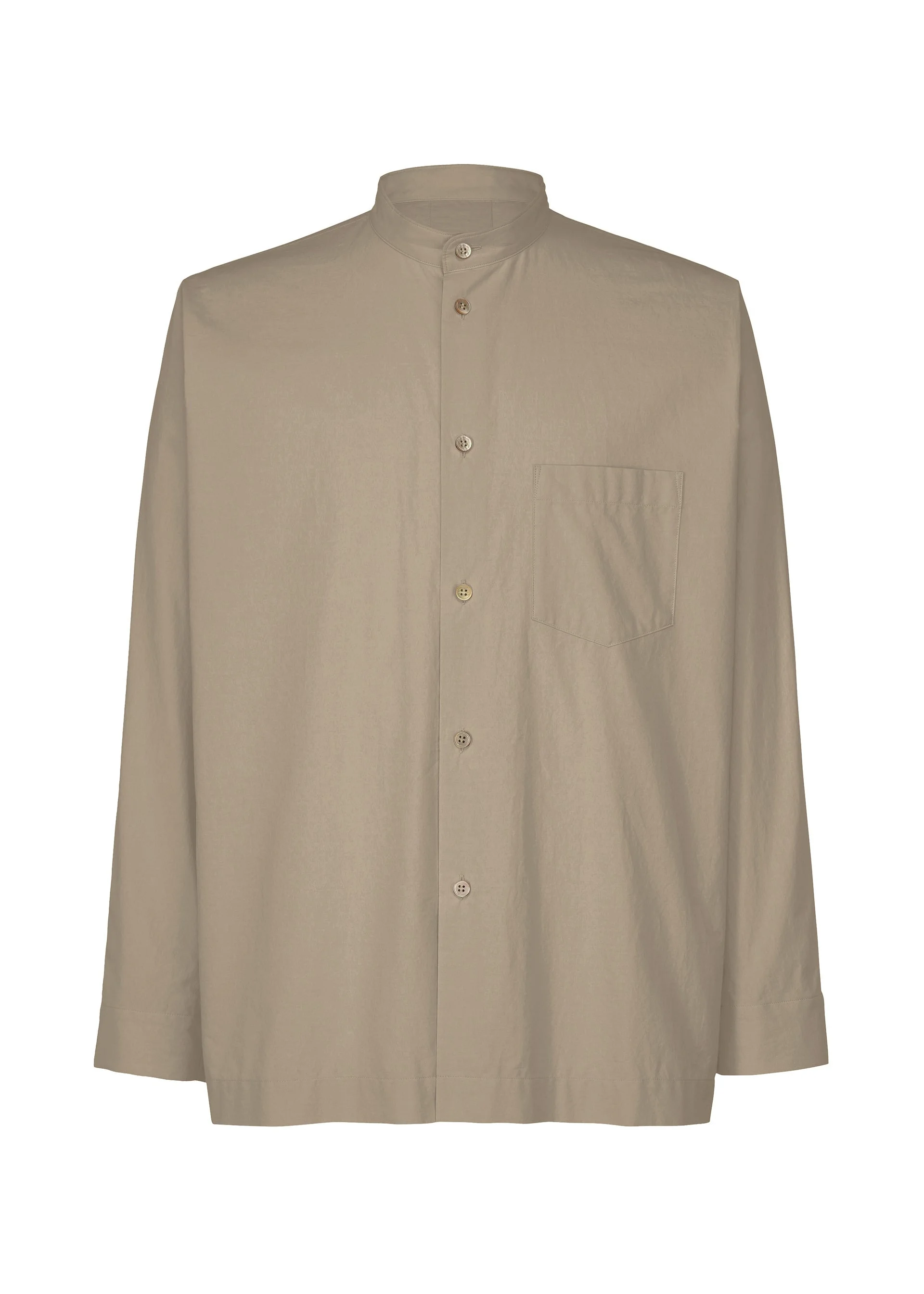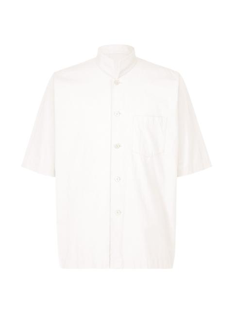 100% cotton stand collar shirt. It is characterized by its delicate and natural texture. There is a pocket on the left chest and slits on both sides. Product Information Material: 100% cotton Country of origin: Philippines neckline/collar:stand collar Front opening:button Pocket (position):left chest Slit (position):both sides