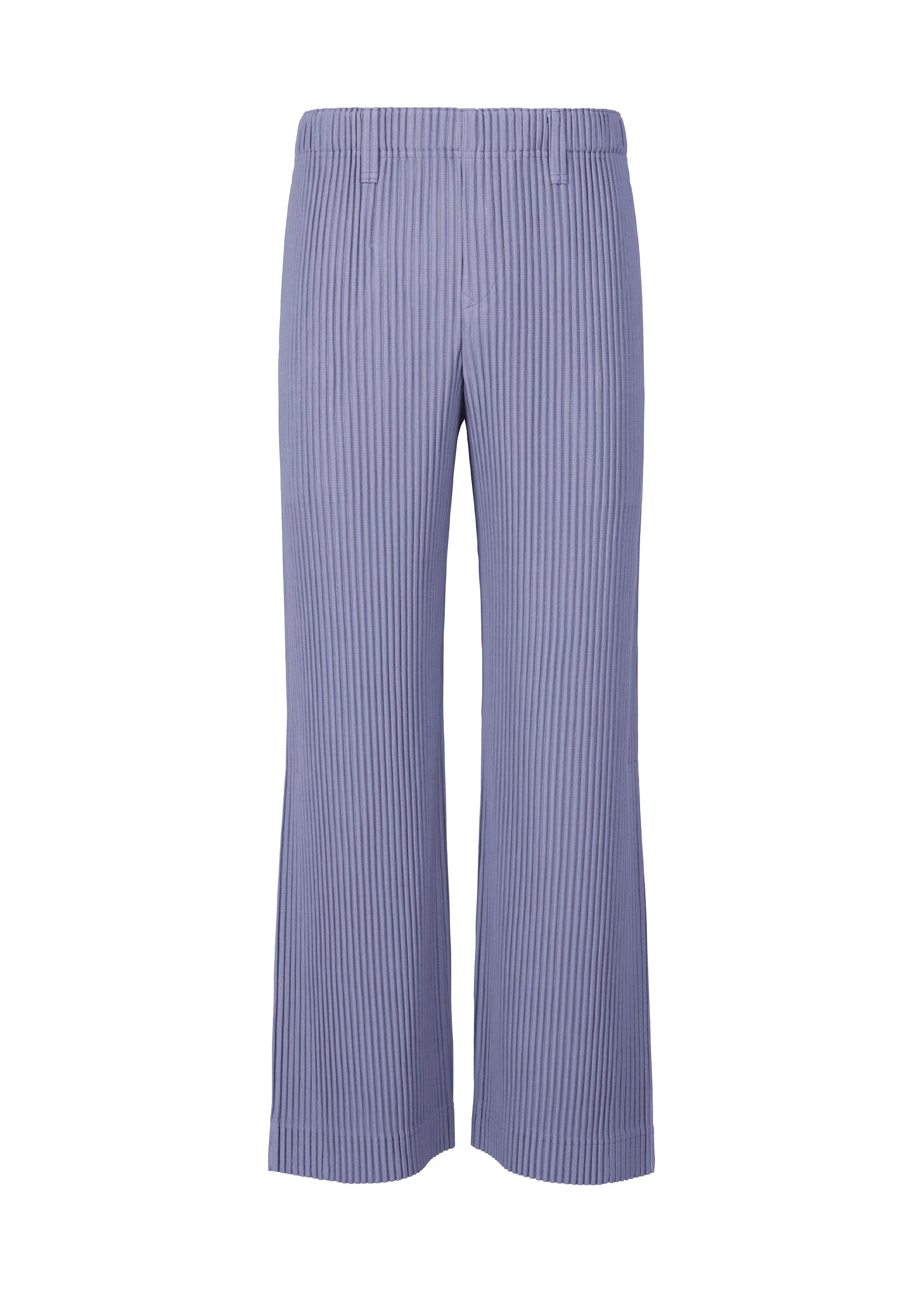 These flared pants with side tucks have a simple design. They are characterized by the unique quick-drying property of polyester material and portability. Designed with an I-line silhouette in mind, they can be worn in a wide range of situations, from formal to casual. There are pockets on both sides and belt loops at the waist. They have a button-fly design. Product Information Material: 100% Polyester Made In The Philippines Waist specifications:Elastic / belt loop Front opening specification:Button fly Pocket (position):Both sides