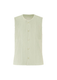 An open-front vest with a simple design. It is characterized by the ease of drying and portability unique to polyester material. Great for a wide range of occasions, from formal to casual. There are pockets on both sides. Product Information Material: 100% polyester Country of origin: Philippines neckline/collar:No collar/round neck Front opening:button Pocket (position):both sides