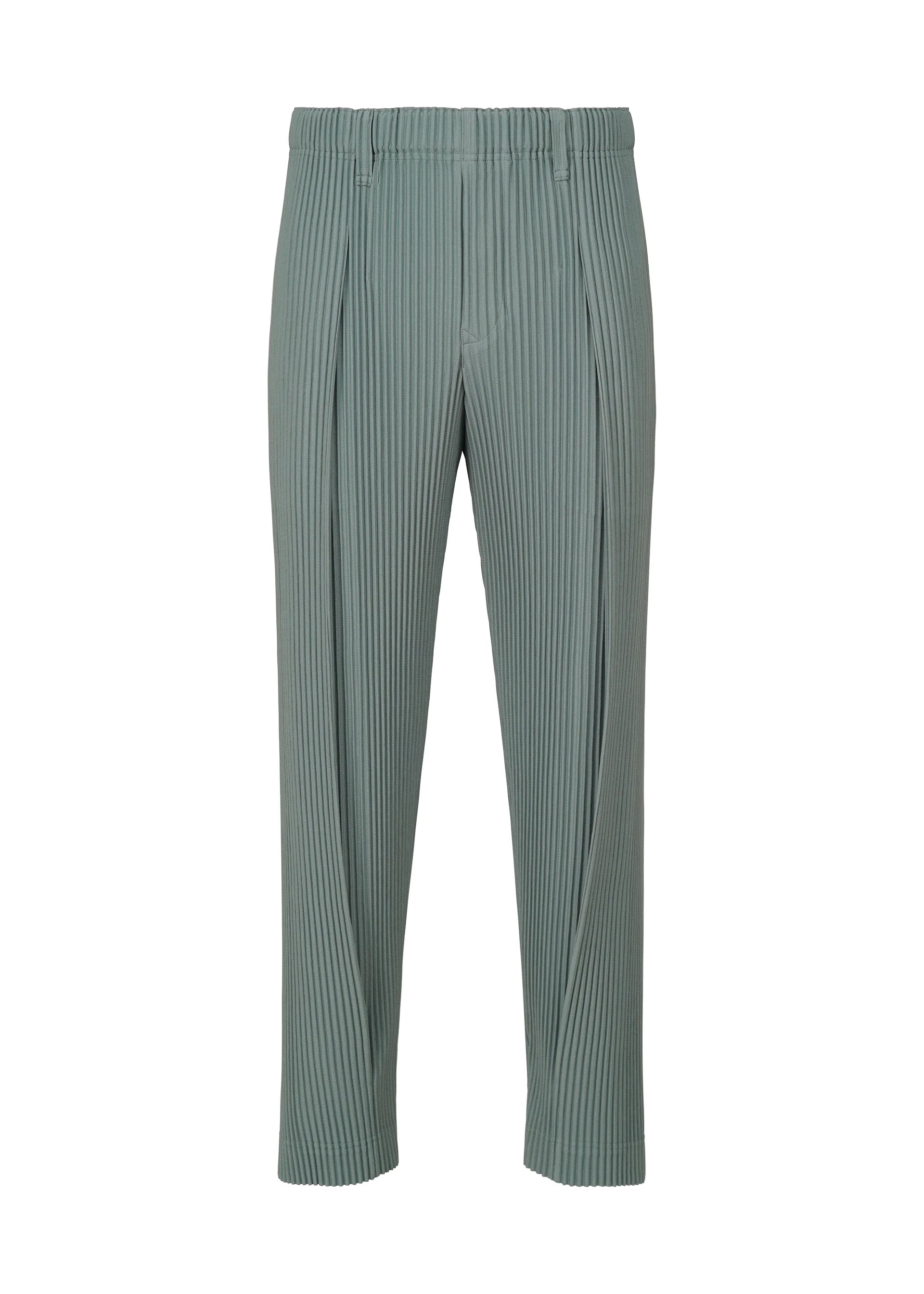 These pants with center tucks feature a simple design. They are characterized by their portability and the unique quick-drying properties of the polyester material. They pair well with jackets and can be used in a wide range of occasions, from formal to casual. They have pockets on both sides and belt loops at the waist. They have a button-fly design. Product Information Material: 100% polyester Made in the Philippines Waist specifications:Elastic / Belt loop Front opening specification:Button fly Pocket (position):Both sides