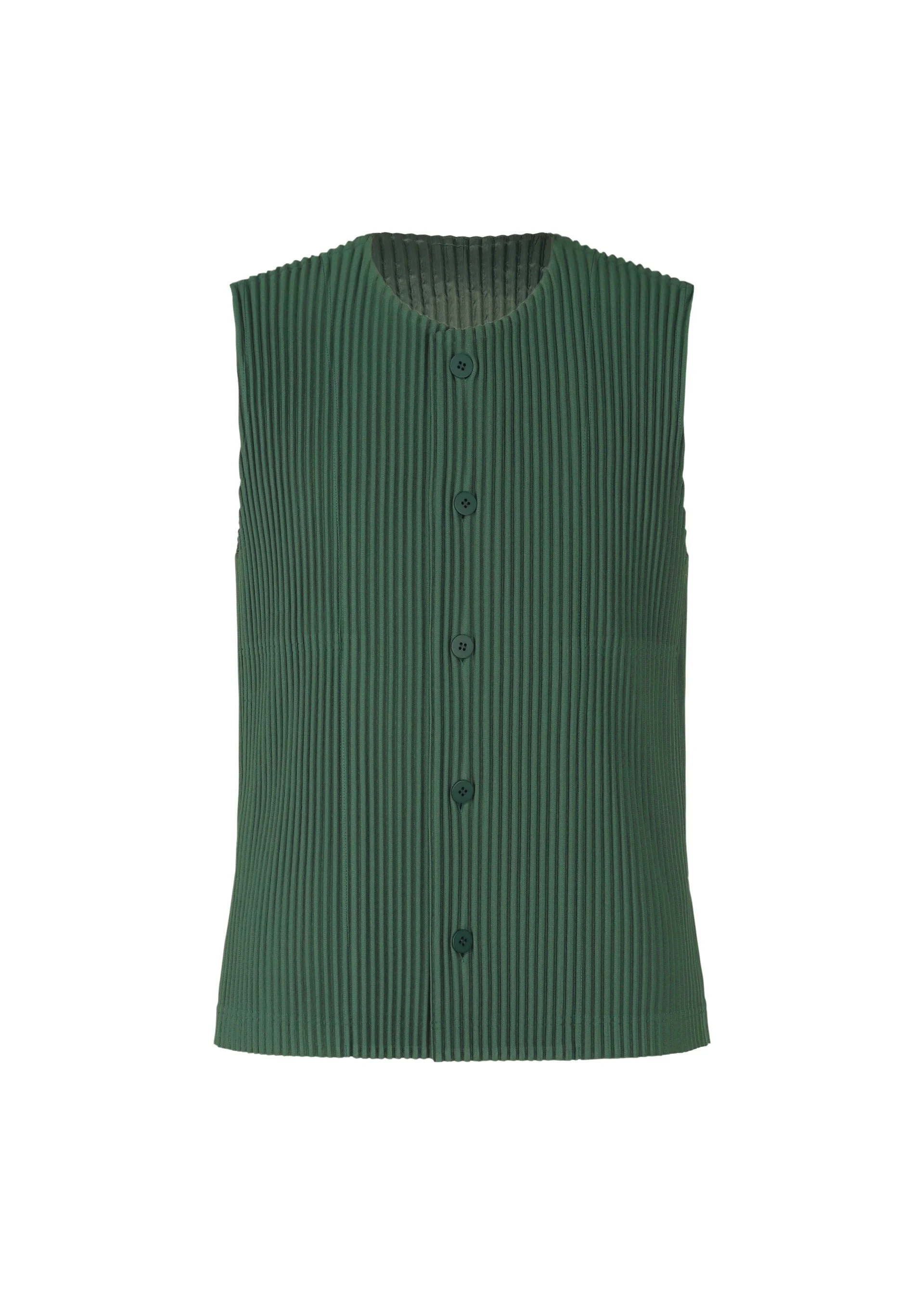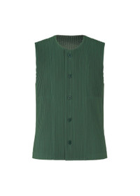 An open-front vest with a simple design. It is characterized by the ease of drying and portability unique to polyester material. Great for a wide range of occasions, from formal to casual. There are pockets on both sides. Product Information Material: 100% polyester Country of origin: Philippines neckline/collar:No collar/round neck Front opening:button Pocket (position):both sides