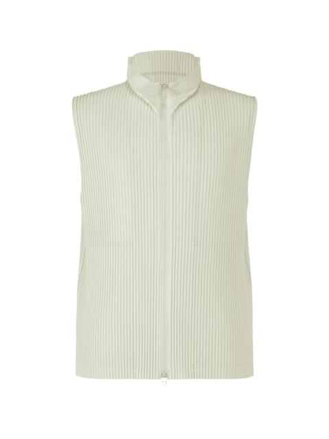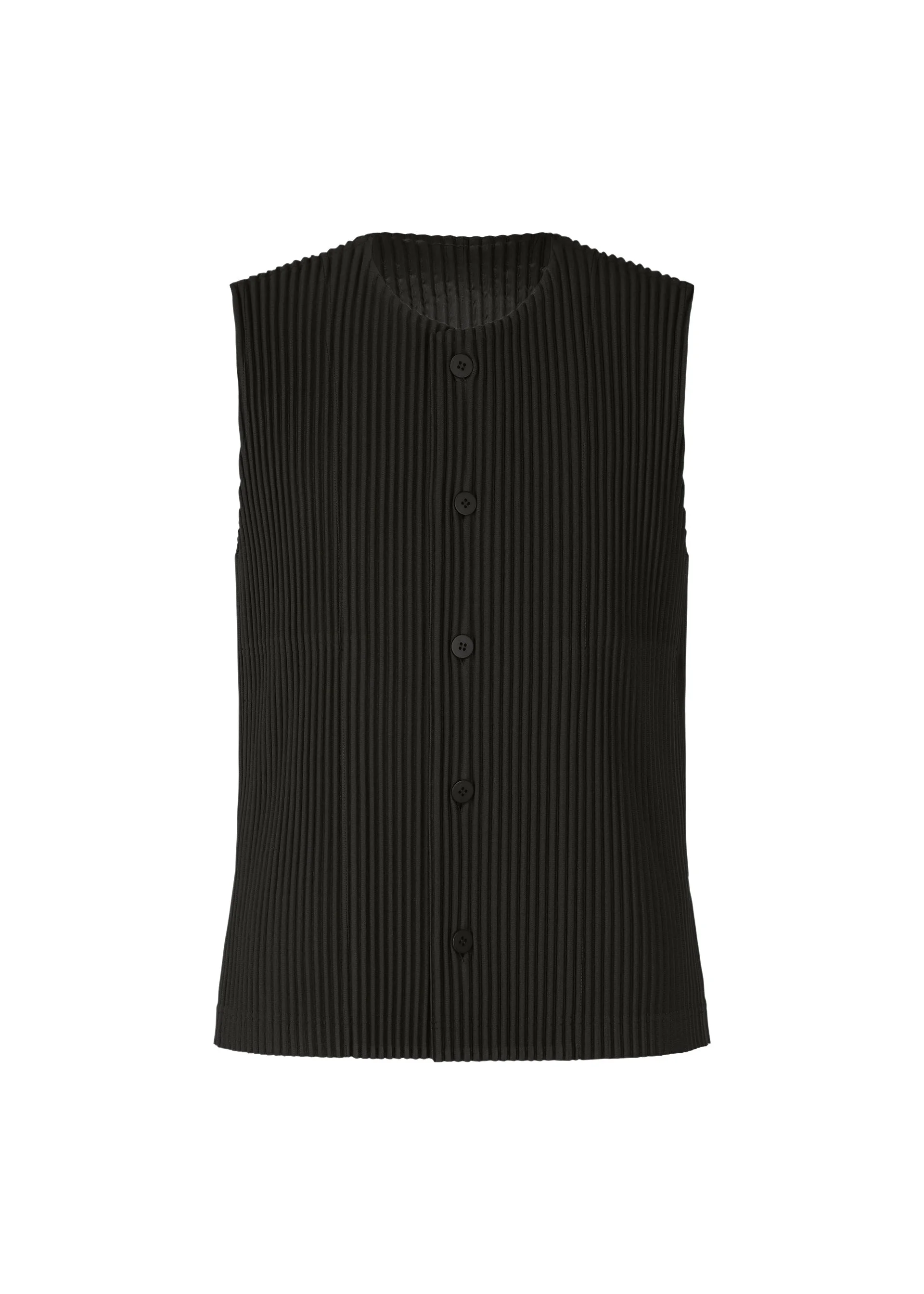 An open-front vest with a simple design. It is characterized by the ease of drying and portability unique to polyester material. Great for a wide range of occasions, from formal to casual. There are pockets on both sides. Product Information Material: 100% polyester Country of origin: Philippines neckline/collar:No collar/round neck Front opening:button Pocket (position):both sides